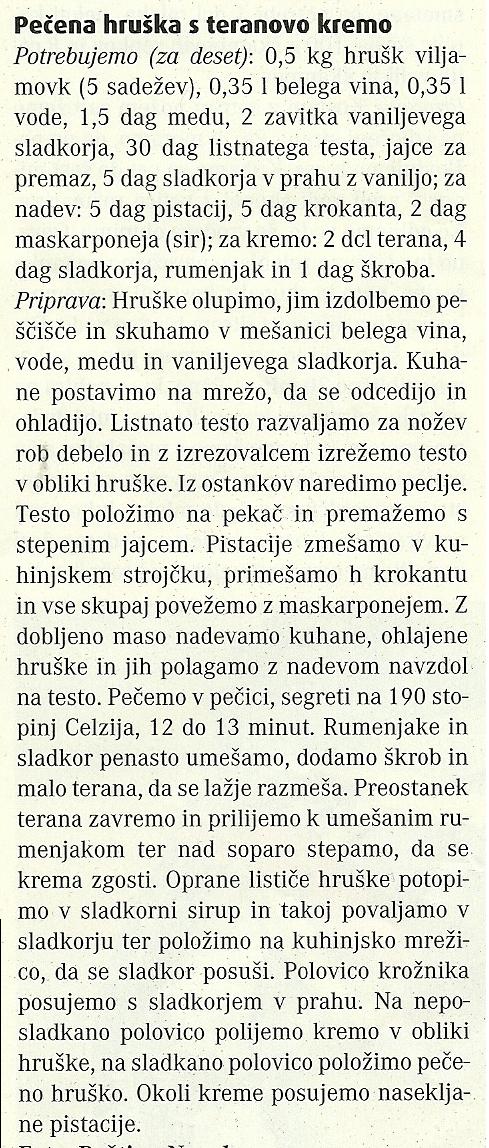 Pečena hruška s teranovo kremo