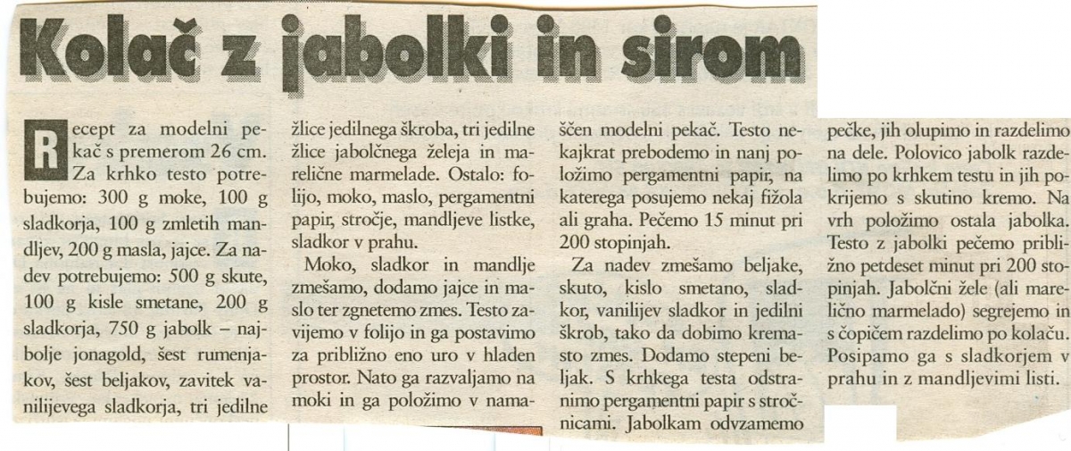 Kolač z jabolki in sirom