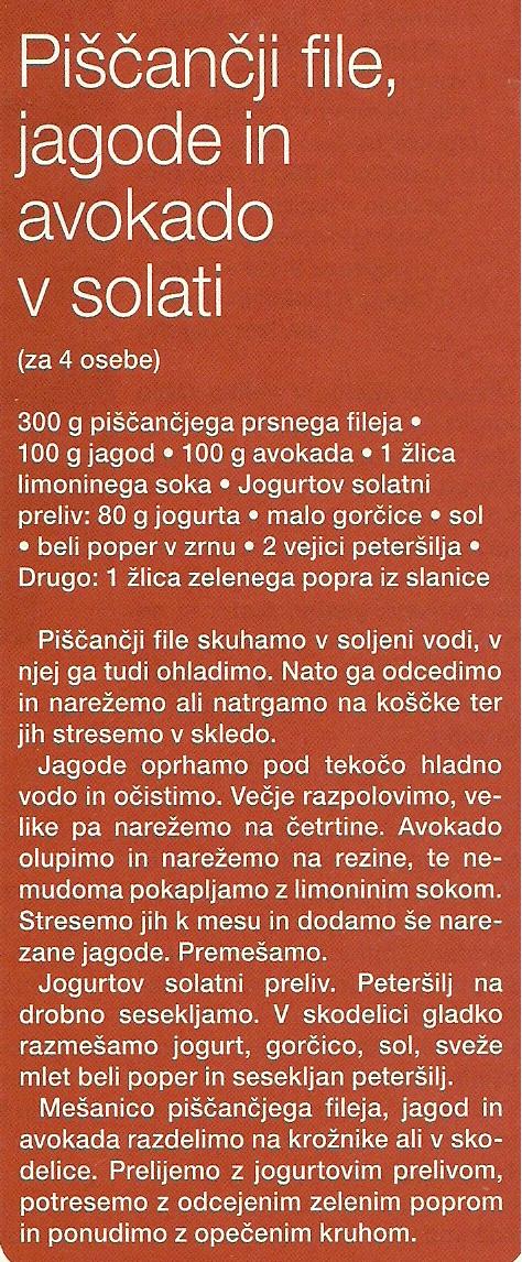 Piščančji file, jagode in avokado v solati