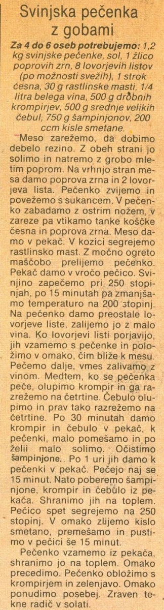 Svinjska pečenka z gobami