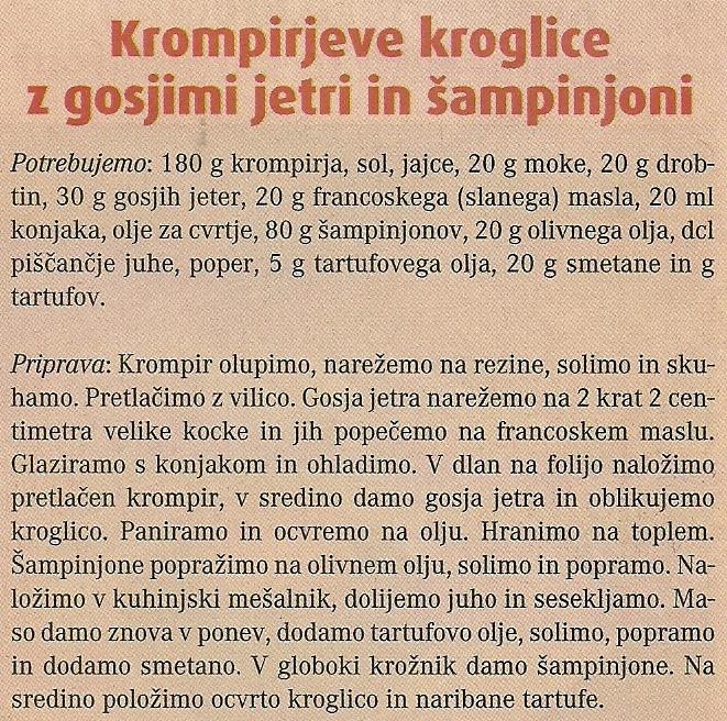 Krompirjeve kroglice z gosjimi jetri in šampinjoni