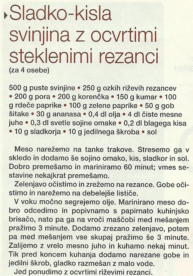 Sladko-kisla svinjina z ocvrtimi steklenimi rezanci