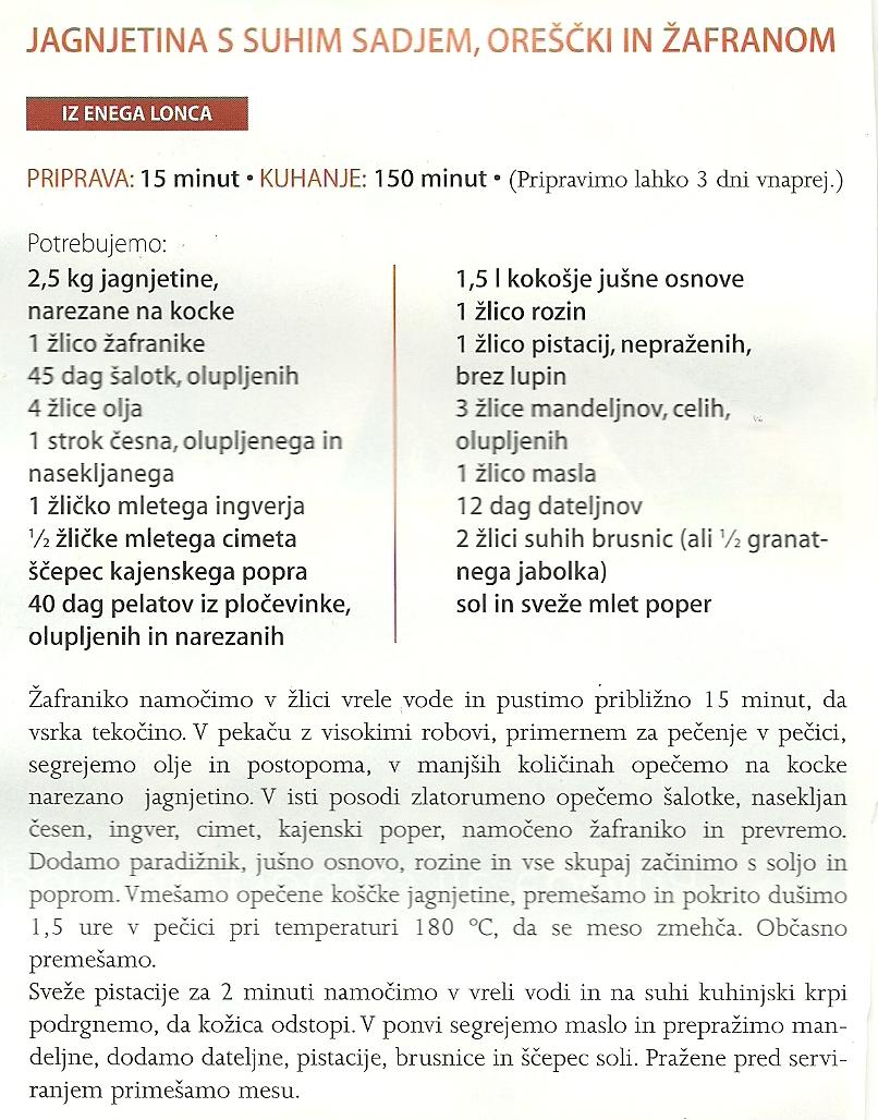 Jagnjetina s suhim sadjem, oreščki in žafranom