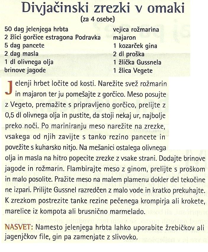 Divjačinski zrezki v omaki