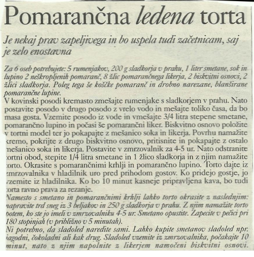 Pomarančna ledena torta