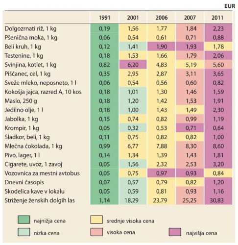 Lepo! Potrebno pa bi bilo imeti vsaj še podatke o plačah. Tako po spominu mislim, da sem imel nekako dvesto evrov plače. In nekateri podatki mi ne gredo skupaj s spominom. Nekaterih stvari ne bi mogel komentirati, se mi pa zdi podatek za ceno mesa na primer zelo neverjeten. Že vsa ta leta kupujem in malo predelujem svinjino in z gotovostjo trdim, da je bila 91 ega bistveno dražja kot je sedaj.
