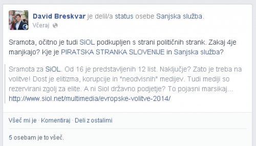 Sramota, očitno je tudi SiOL podkupljen s strani političnih strank. Zakaj 4je manjkajo? Kje je PIRATSKA STRANKA SLOVENIJE in Sanjska služba?