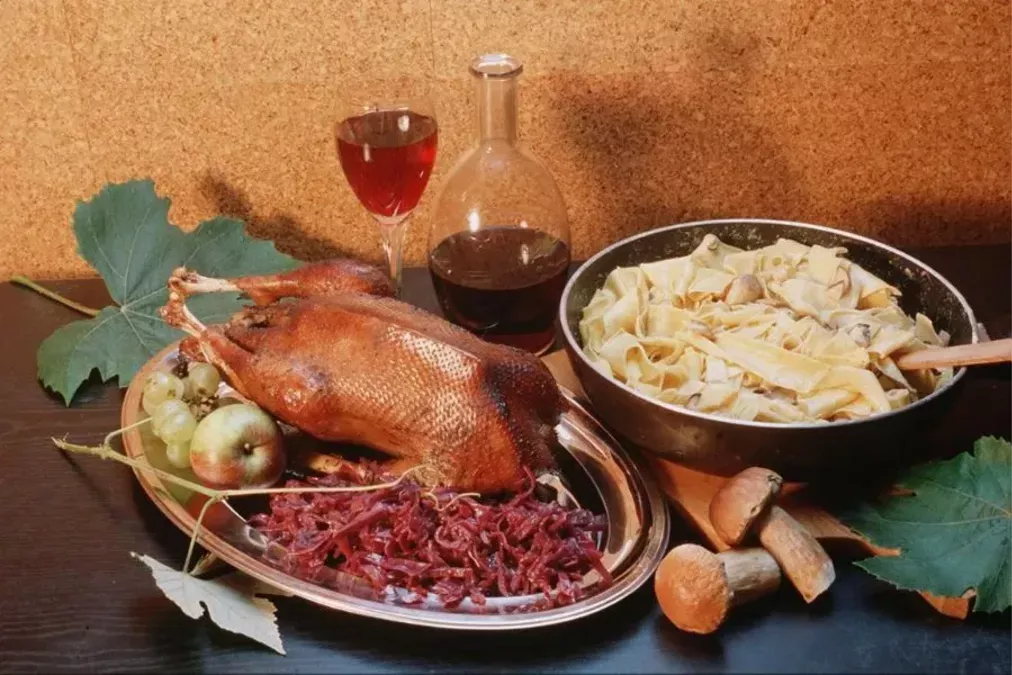 Traditional dishes of St. Martin day with a glass of new season wine. Source: Slovenec.org