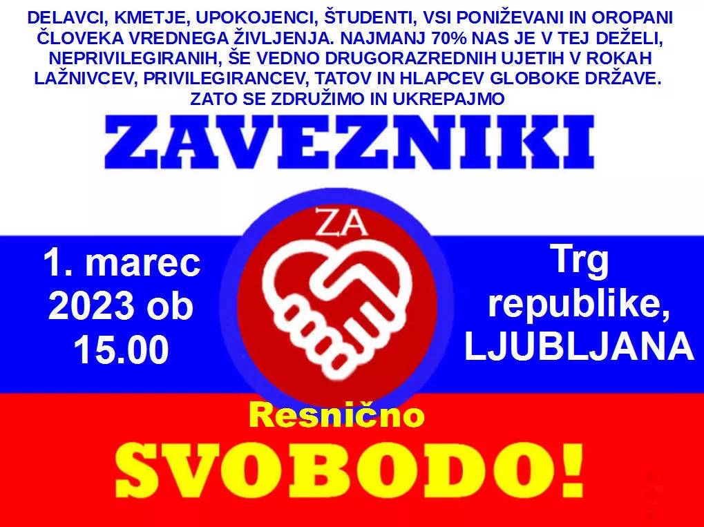 1. marca vseslovenski protest ob 15.00 na Trgu republike.