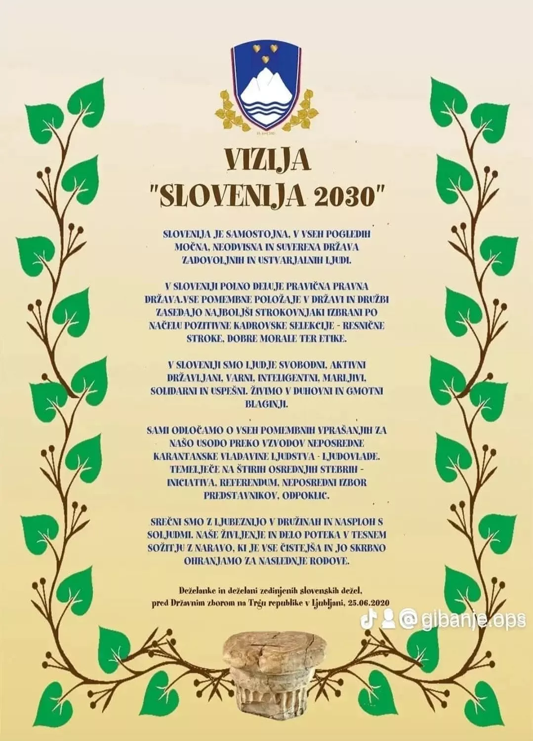Naša pot je pot narodne enotnosti, odgovornosti in častne zaveze narodu, da bosta pričujoč program in vizija Slovenija 2030 uresničena.