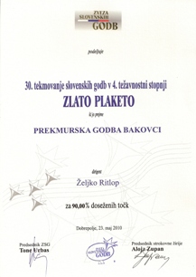 Na 30. tekmovanju slovenskih godb v 4. težavnostni stopnji smo znova dokazali našo težnjo h kakovosti izvajanja skladb in tudi tokrat prejeli zlato plaketo.