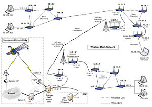 Arhitektura brezžičnih mrež je prvi korak k zagotavljanju stroškovno učinkovite in nizke mobilnosti na določenem območju pokritosti. Infrastruktura za brezžične mreže je dejansko omrežje usmerjevalnikov minus kabliranje med vozlišči. Zgrajena je iz medvrstniških radijskih naprav, ki jih ni treba priključiti na žična vrata, kot to počnejo običajne dostopne točke WLAN (AP) . Mrežna infrastruktura prenaša podatke na velike razdalje tako, da razdaljo razdeli na niz kratkih skokov. Vmesna vozlišča ne samo okrepijo signal, temveč skupaj prenašajo podatke od točke A do točke B tako, da sprejemajo odločitve o posredovanju na podlagi njihovega poznavanja omrežja, torej izvedejo usmerjanje, tako da najprej izvedejo topologijo omrežja.