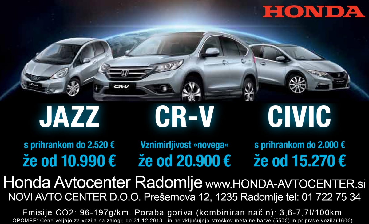 HONDA AVTOCENTER RADOMLJE Prešernova 12 1235 Radomlje Kontaktirajte nas: (01) 722 75 34 041 390 094 (01) 722 71 32 E-mail: info@honda-avtocenter.si