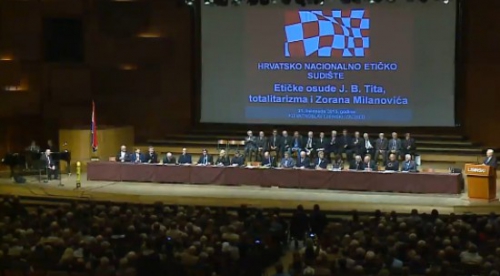 Hrvaško nacionalno etično sodišče je v soboto v veliki dvorani KD Vatroslava Lisinskega v Zagrebu etično obsodilo nekdanjega jugoslovanskega diktatorja Josipa Broza Tita – zaradi zagrešenega genocida in drugih zločinov nad hrvaškim narodom. Ob tem so obsodili tudi njegove ideološke naslednike, vključno s premierjem Zoranom Milanovićem. Ta prihaja iz stranke SDP, naslednice komunistične stranke Hrvaške, ki je bila del KPJ, ki jo je vodil Tito.