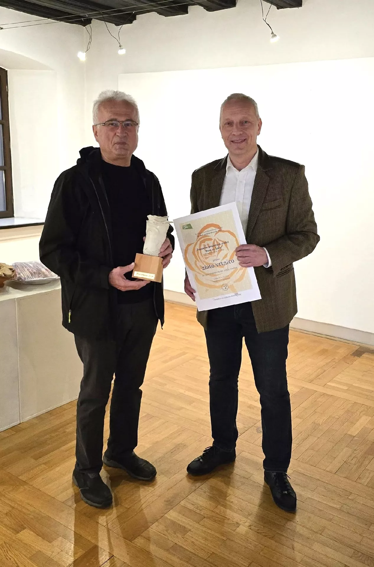 Vse pohvale tudi stanovalcem doma starejših, ki se radi aktivno vključijo v urejanje okolice in ocvetličenje Doma. Statua Zlate vrtnice 2024, ki jo je na prireditvi prevzel predstavnik Doma sv. Jožef, g. Jože Planinšek, je unikatno umetniško delo celjskega avtorja Mateja Čepina.