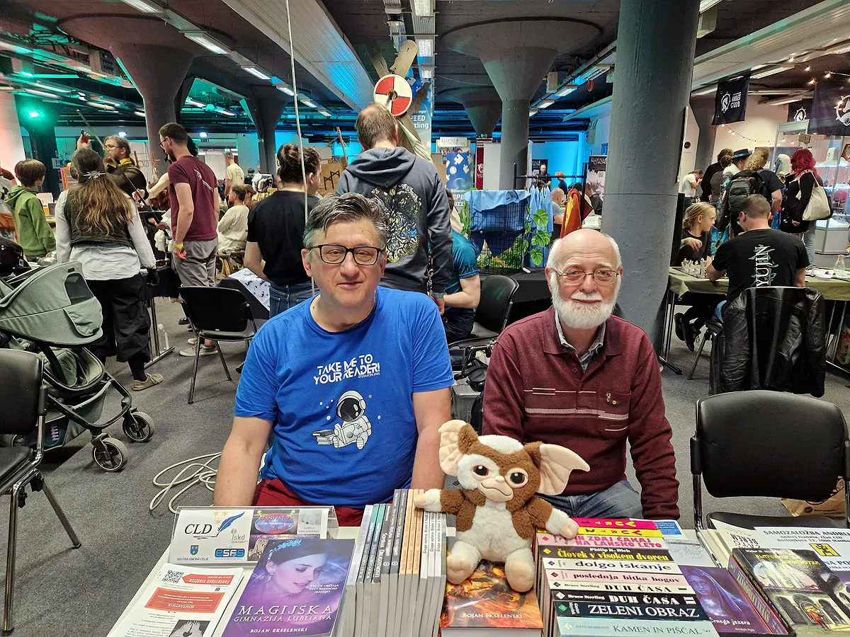 Naš poudarek je bil na promociji Supernove, ki je še vedno edina revija za resno fantastiko (ob uporabi pridevnika odraslo bi lahko kdo pomislil na kaj zajčjega) in Fanfestu, še vedno, ja, vem, znova ste uganili, edinem festivalu fantazijske književnosti v Sloveniji. Razstavili smo tudi knjižne dragulje in najpomembneje, uradni sponzor stojnice je bil Bojanov suženj Gizmo, ki je svoje čarobno moč usmeril v zbirko Celje v vesolju in svežo Supernovo.