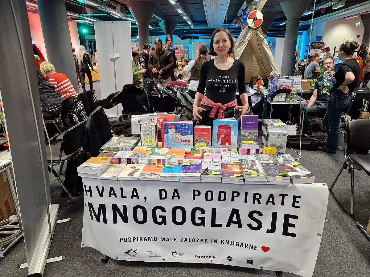 Je pa to napredek v primerjavi s stojnico Mladinske knjige izpred 7 ali 8 let, ko so imeli izključno knjige v angleškem jeziku.