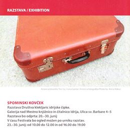 Zgodbica z naslovom Spominski kovček je moje delo in je podlaga za postavitev razstave. Hvala Društvu klekljaric idrijske čipke in njeni predsednici Dori Gnjezda