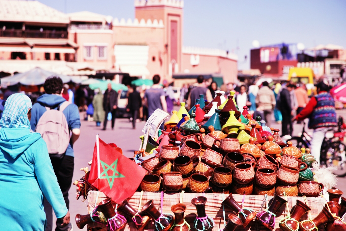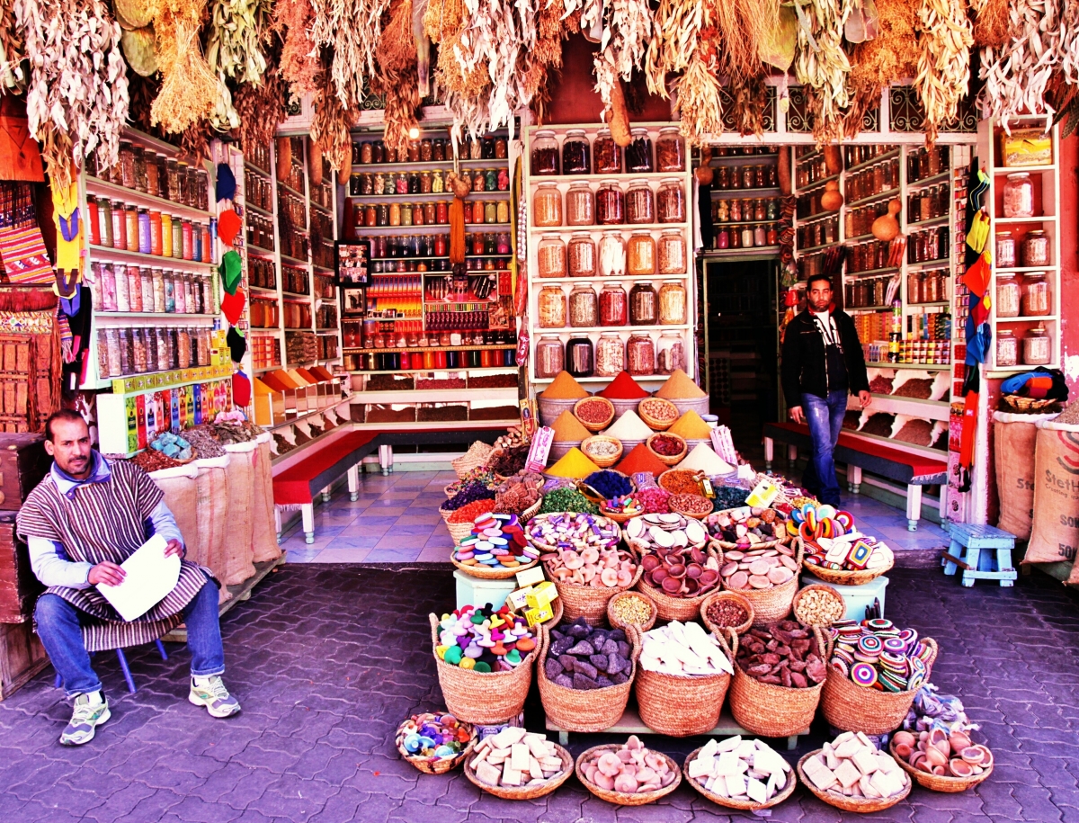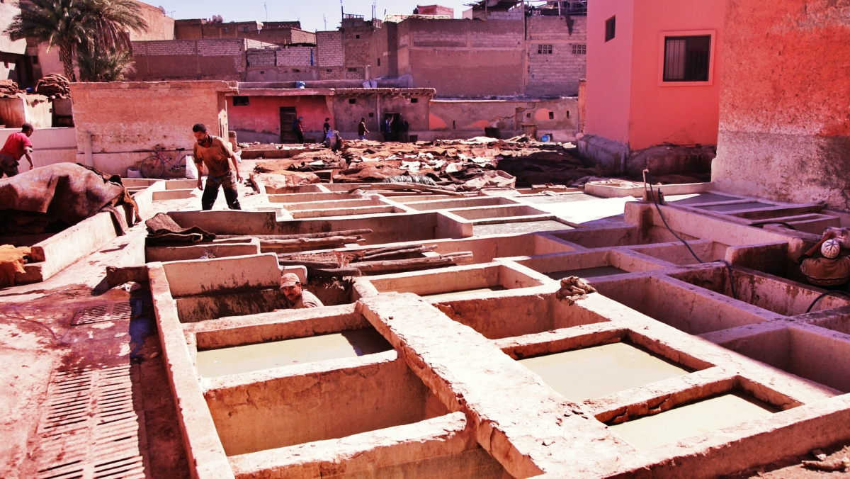 Marakeš je destinacija, brez katere ni obiska Maroka. Mesto v barvi rdečega puščavskega peska je neizogibna točka tako za hipijevsko navdahnjene popotnike na mikroproračunu kot za all-inclusive turiste, ki jih v klimatiziranih avtobusih dovažajo iz Agadirja na atlantski obali. Midva sva ubrala najbolj lokalno možnost, vlak s stotimi vagoni in prav toliko odstotno zasedenimi sedeži, ki naju je v sedmih urah popeljal na panoramski ogled osrednjega dela države preko Rabata in Casablance (ta žal ne deluje prav nič romantično, saj je tam glavni kapital), preko obale in končno še puščave, kjer se prevladujoči odtenek iz rumenkastega prevesi v rdečo. Fotografski del odprave bi dal marsikaj za postanek za škljocanje pusčavskih hiš, ki se enkratno zlivajo s hribovito pokrajino, a vsega se pač ne da imeti. K sreči na cilju dramatično kuliso ponudi Atlas, ki se tukaj vzpne do alpskih višav, z zasneženimi vrhovi za dopolnitev vtisa vred.