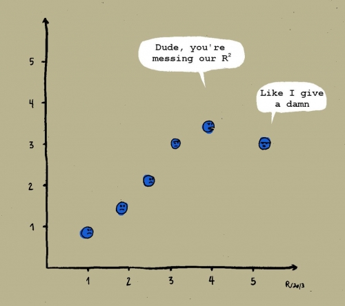 Pri linearni regresiji, determinacijski koeficient R kvadrat izraža delež variance odvisne spremenljivke, ki je pojasnjena z neodvisno spremenljivko.