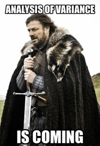 Enosmerna analiza variance temelji na primerjavi aritmetičnih sredin in nam pove, ali se aritmetične sredine vzorčnih skupin med sabo statistično pomembno razlikujejo. (Katera skupina najradi gleda Igro prestolov). Če se vzorčne aritmetične sredine med sabo statistično pomembno razlikujejo, lahko to posplošimo na osnovno množico.