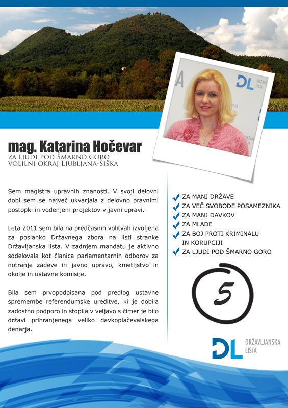 magistra upravnih znanosti se je v svoji delovni dobi največ ukvarjala z delovno pravnimi postopki in vodenjem projektov v javni upravi. Leta 2011 je bila na predčasnih volitvah izvoljena za poslanko Državnega zbora na listi stranke Državljanska lista. V zadnjem mandatu je aktivno sodelovala kot članica parlamentarnih odborov za notranje zadeve in javno upravo, kmetijstvo in okolje in ustavne komisije. Bila je prvopodpisana pod predlog ustavne spremembe referendumske ureditve, ki je dobila zadostno podporo in stopila v veljavo. Je mamica dveh sinov in živi v vasici Borje blizu Trojan.