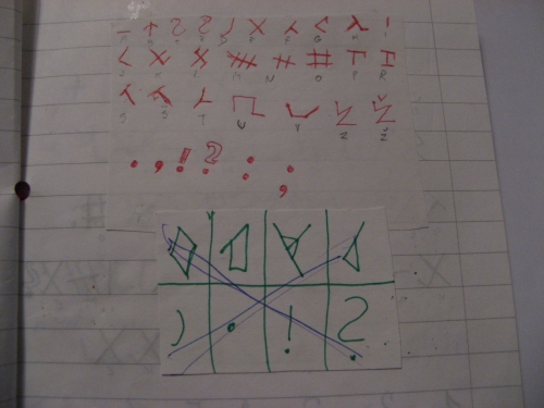 Naj povem, kako se je pri meni sploh vse skupaj začelo. Bilo je davnega leta 199x, ko sem bila v četrtem razredu osnovne šole, oz tam nekje, ne vem ali je bilo med počitnicami ali so se le te bližale. X pri letnici ni zato, ker ne bi hotela povedat letnice, ampak, ker je preprosto ne vem. Ponavadi sem šla v staro hišo, kjer je bila soba, kjer sem se igrala. Bila sem sama in sem govorila in se pogovarjala s sebi primernimi ljudmi, tako po letih, kot po inteligenci. Sestra je bila premlada, pa še igrati se nikoli ni hotela z mano. No, tako sem nekega dne ustvarila svojo angelsko šolo, prav tako sem ustvarila abecedo, pravila obnašanja, prehranjevanja, oblačenja in vsega. Vse se je dogajalo seveda v mojem svetu. Tu je primer te abecede in števil: