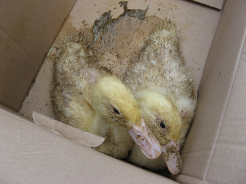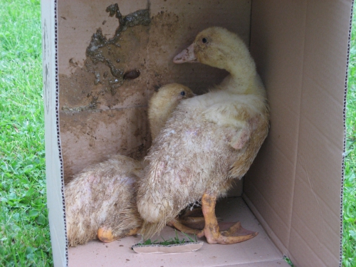 Hahaha, ne, ne, ni hahaha, je skoraj ga-ga-ga. Na naše "posestvo" sta prispela dva, no en parček, tak lep, mali, puhasti parček. Ja, ja, še je puhast, pa tak čuden vonj ga obdaja pa puh odpada in zgleda, kot da bi bila gola po enem delu, pa glasu še nimata pravega, pa še toliko malenkosti je okoli njiju, ampak saj bo, saj bo.