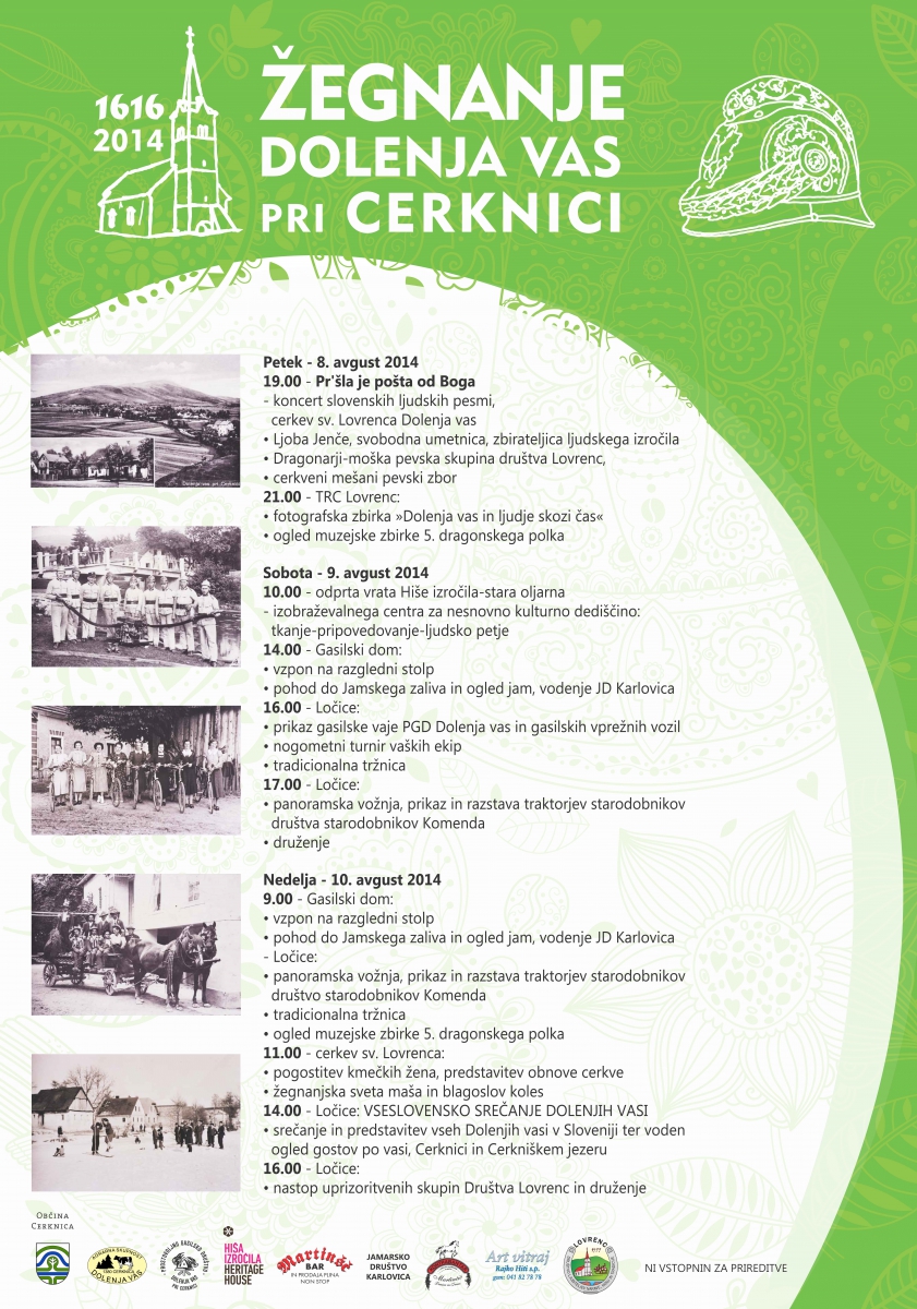 V avgustu, no 10. avgusta goduje Sv. Lovrenc, ki je zavetnik cerkve, ki se nahaja konec vasi. Takrat imamo žegnanje in ponavadi, zaradi bližine rojstnega dne grem takrat tudi k maši. Letos so vaščani obnovili cerkev in bo druženje, katero bo trajalo kar 3 dni. Ker je v vasi tudi Društvo ljubiteljev konj Lovrenc, bo tudi to društvo prispevalo svoj prostor in še veliko k nepozabnem druženju na vasi. Da ne bom dolgovezila, ker vem, da me ne razumete, vam raje prilepim vabilo, da v miru preberete. Mogoče pa se vidimo na tej prireditvi.