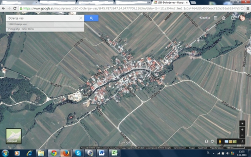 Kakšna vas je Dolenja vas in kako ležijo hiše predstavlja ta slika.