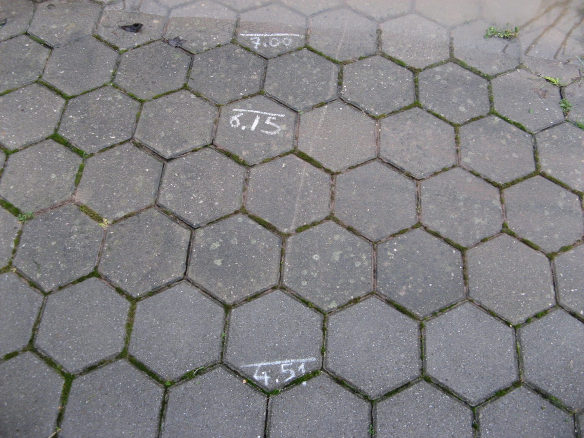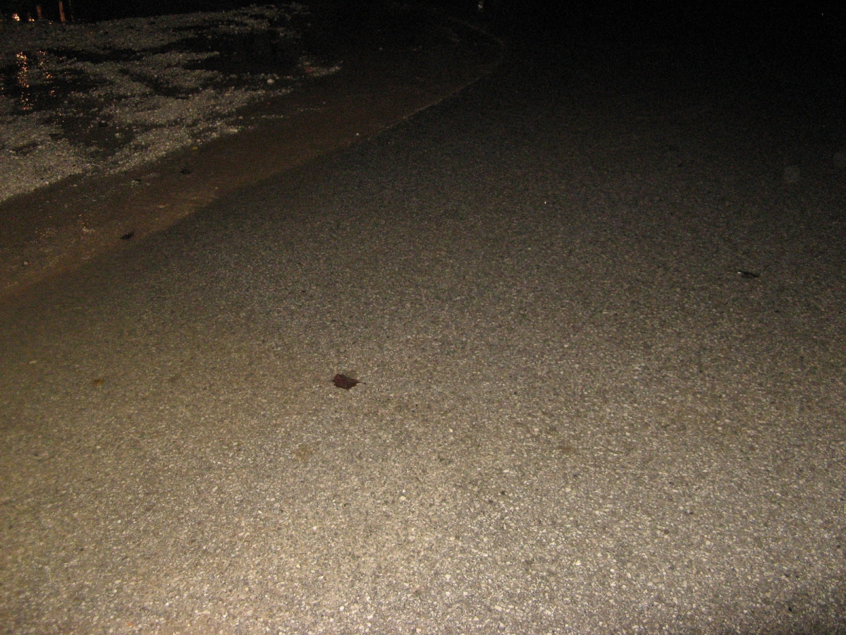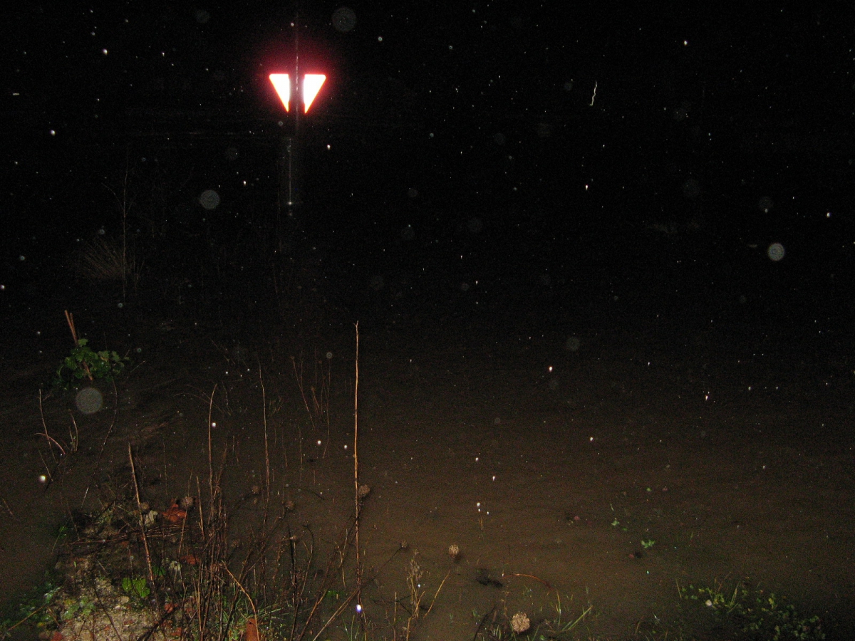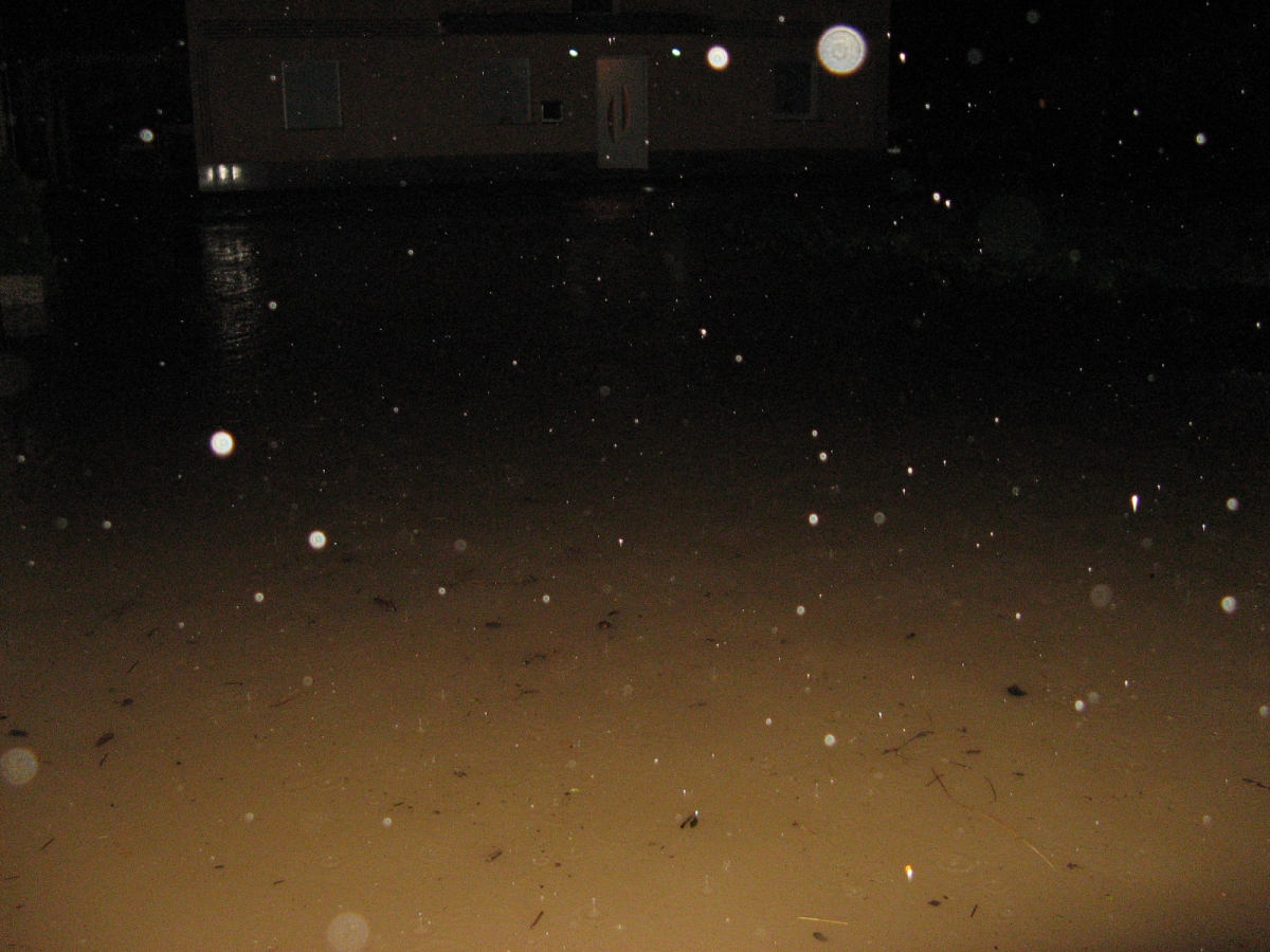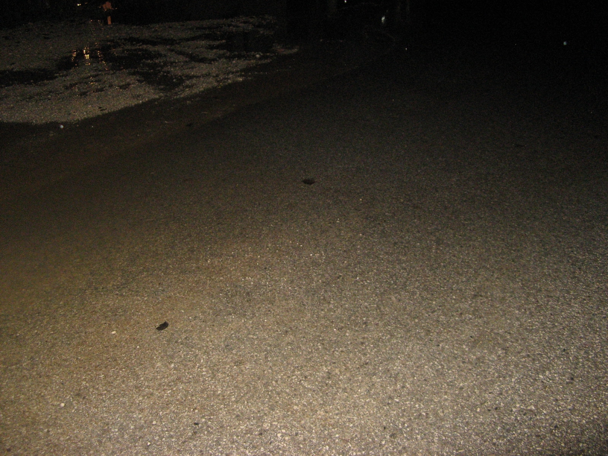 Nikjer nobenega alarma, da bi prebudil ljudi, vode je ulico stran od potoka Cerkniščice toliko, da teče po vrtovih in cesti sami. Voda je visoka in deroča. Dere, šumi. Ker nismo vedeli ali voda narašča ali pada, sem s kredo na tlakovec zarisala črto in dopisala uro. Bila je 4:51. Črta je približno 30cm nižje kot vhod v verando. Enake črte sem naredila tudi ob 6:15 in ob 7h. Prvo sireno sem slišala ob približno 5h, ko je prihajala iz Cerknice.