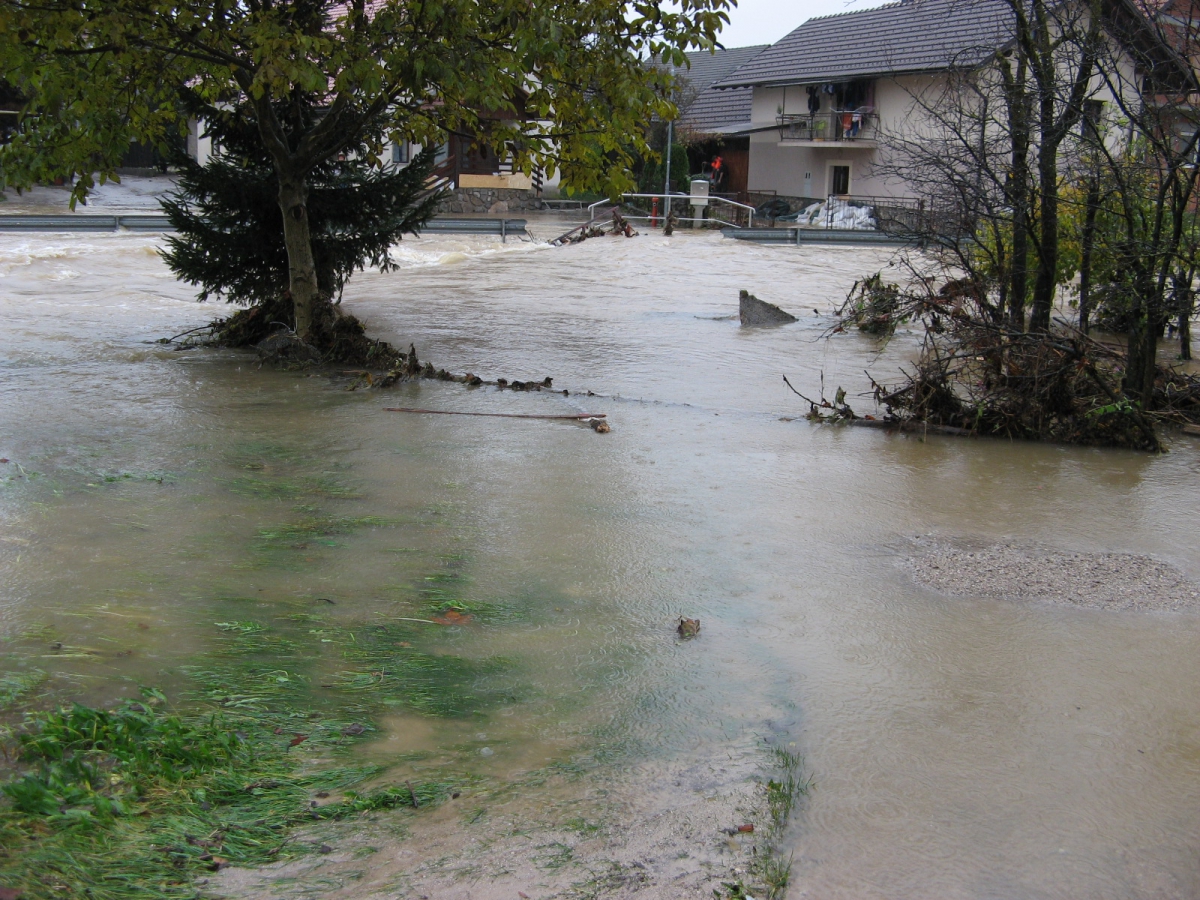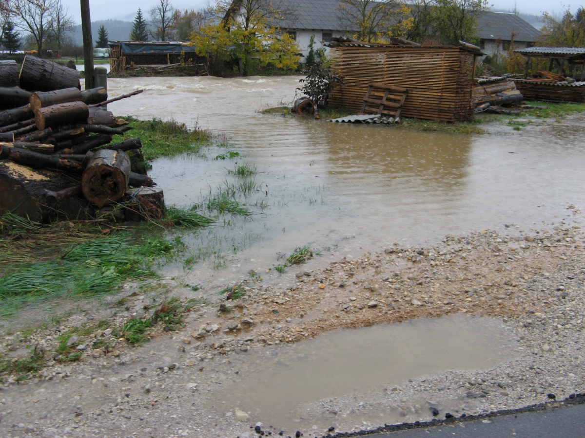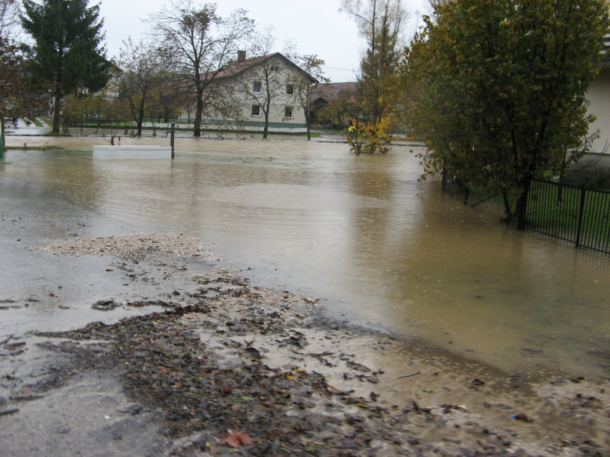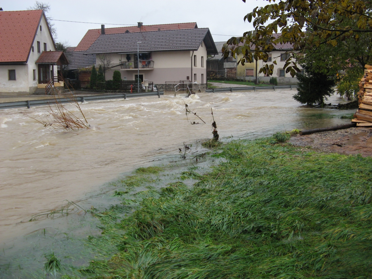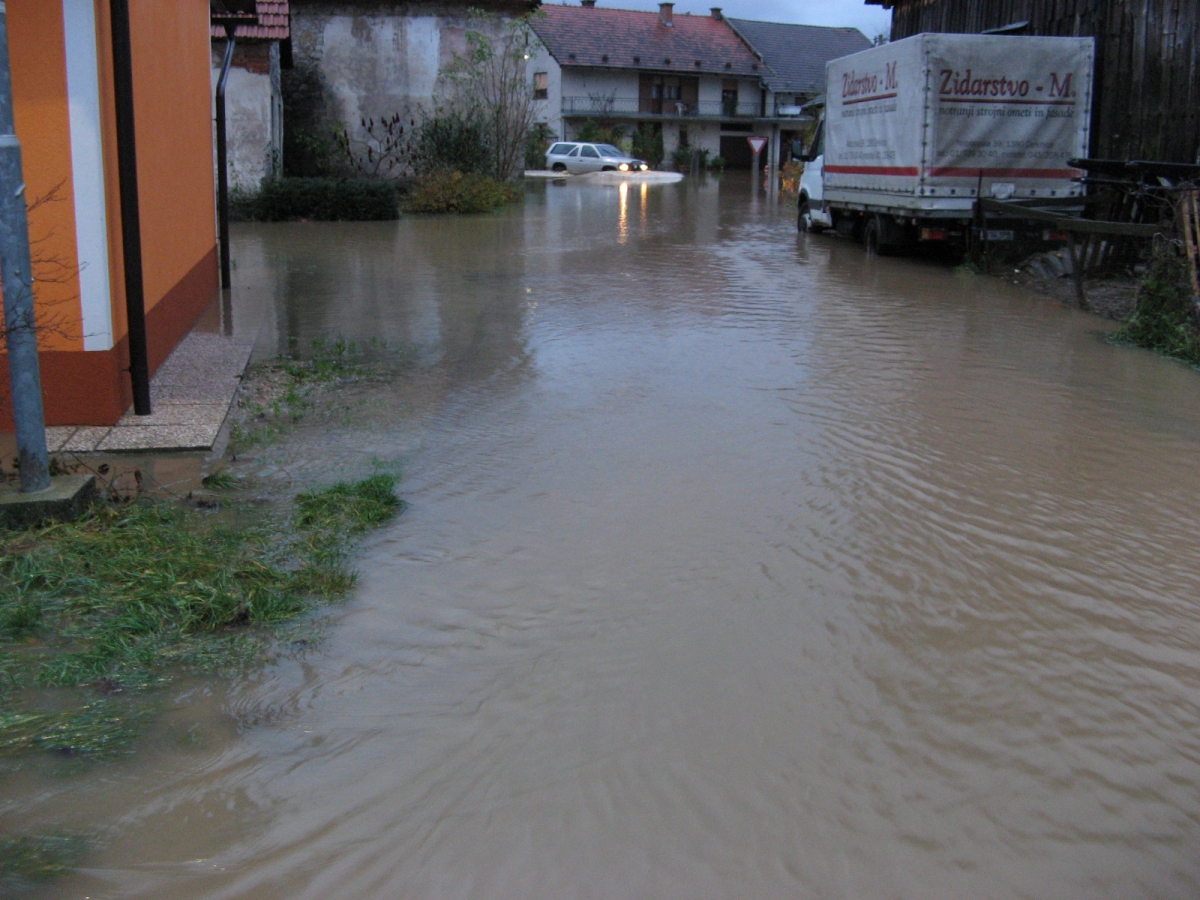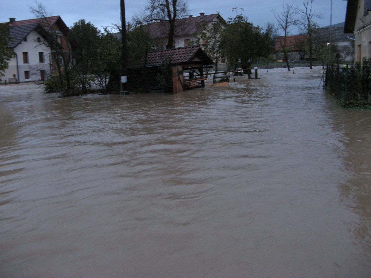 Okoli 6h se je začelo daniti in sem šla pogledat kaj je na njivah, vrtovih, no travnikih konec našega vrta, saj ko je bila noč, sem videla samo to, da je voda do žive meje, ter da je nekje v bližini močno bobnelo. Ko sem prišla ke, sem videla, da se je travnik spremenil v potok, bobnenje pa je povzročal tok, ki se je prelival preko ceste na drugo stran in nadaljeval svojo pot poplavljanja.