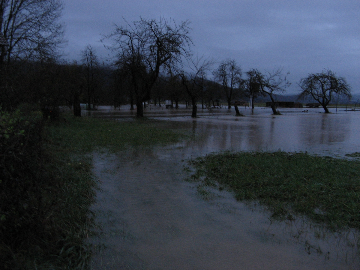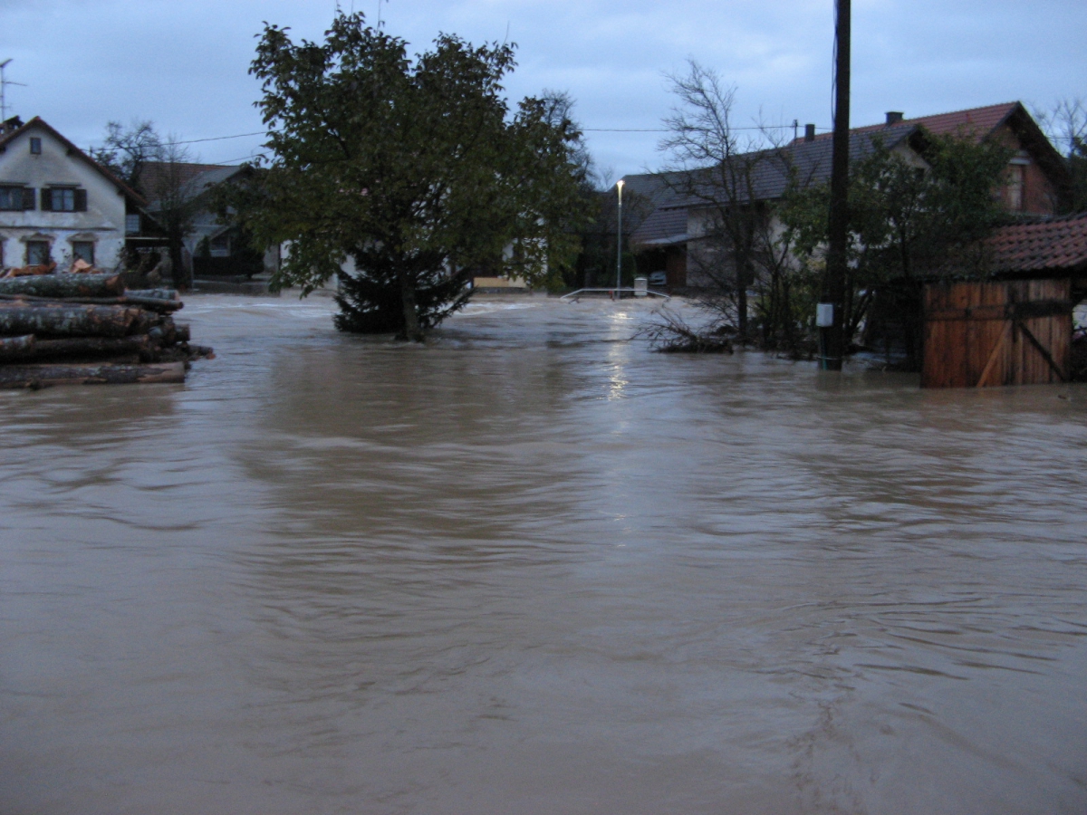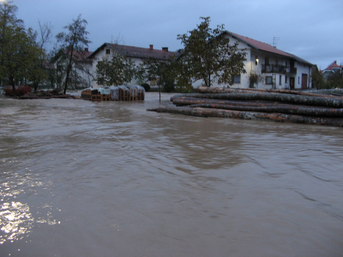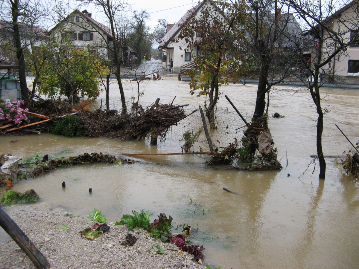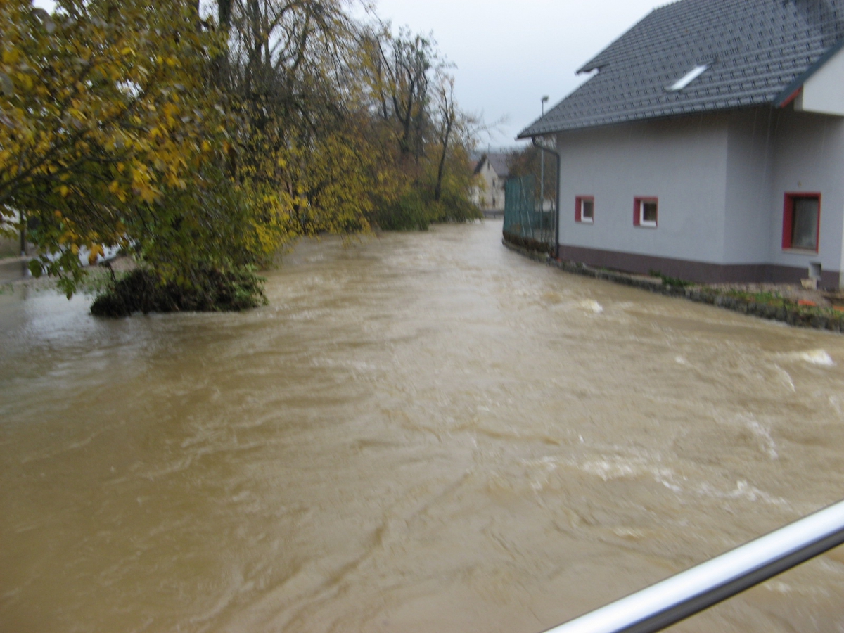 Okoli 6h se je začelo daniti in sem šla pogledat kaj je na njivah, vrtovih, no travnikih konec našega vrta, saj ko je bila noč, sem videla samo to, da je voda do žive meje, ter da je nekje v bližini močno bobnelo. Ko sem prišla ke, sem videla, da se je travnik spremenil v potok, bobnenje pa je povzročal tok, ki se je prelival preko ceste na drugo stran in nadaljeval svojo pot poplavljanja.