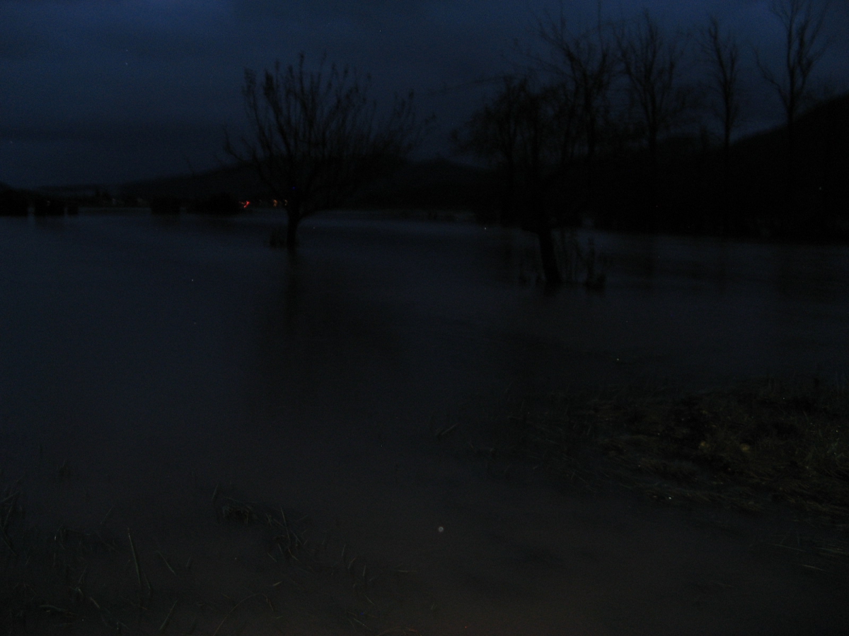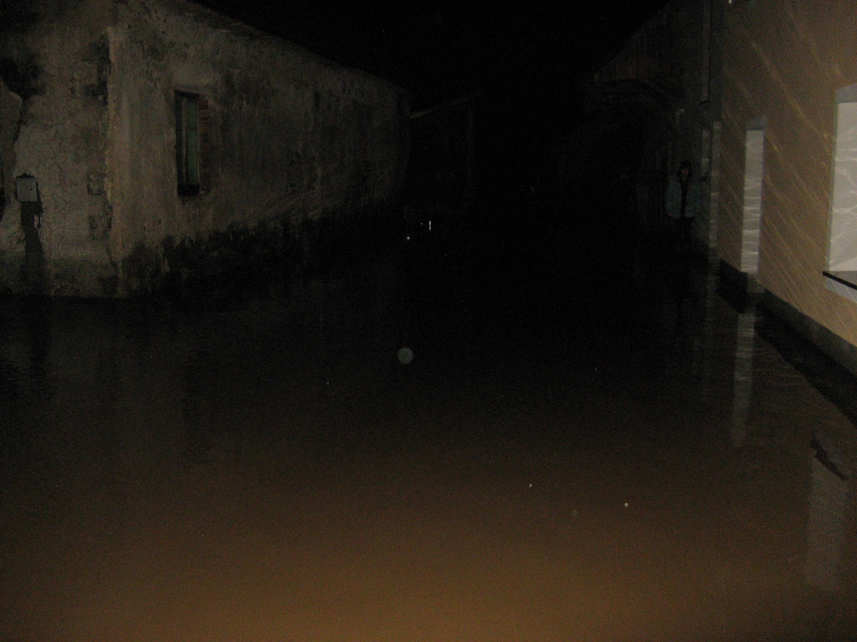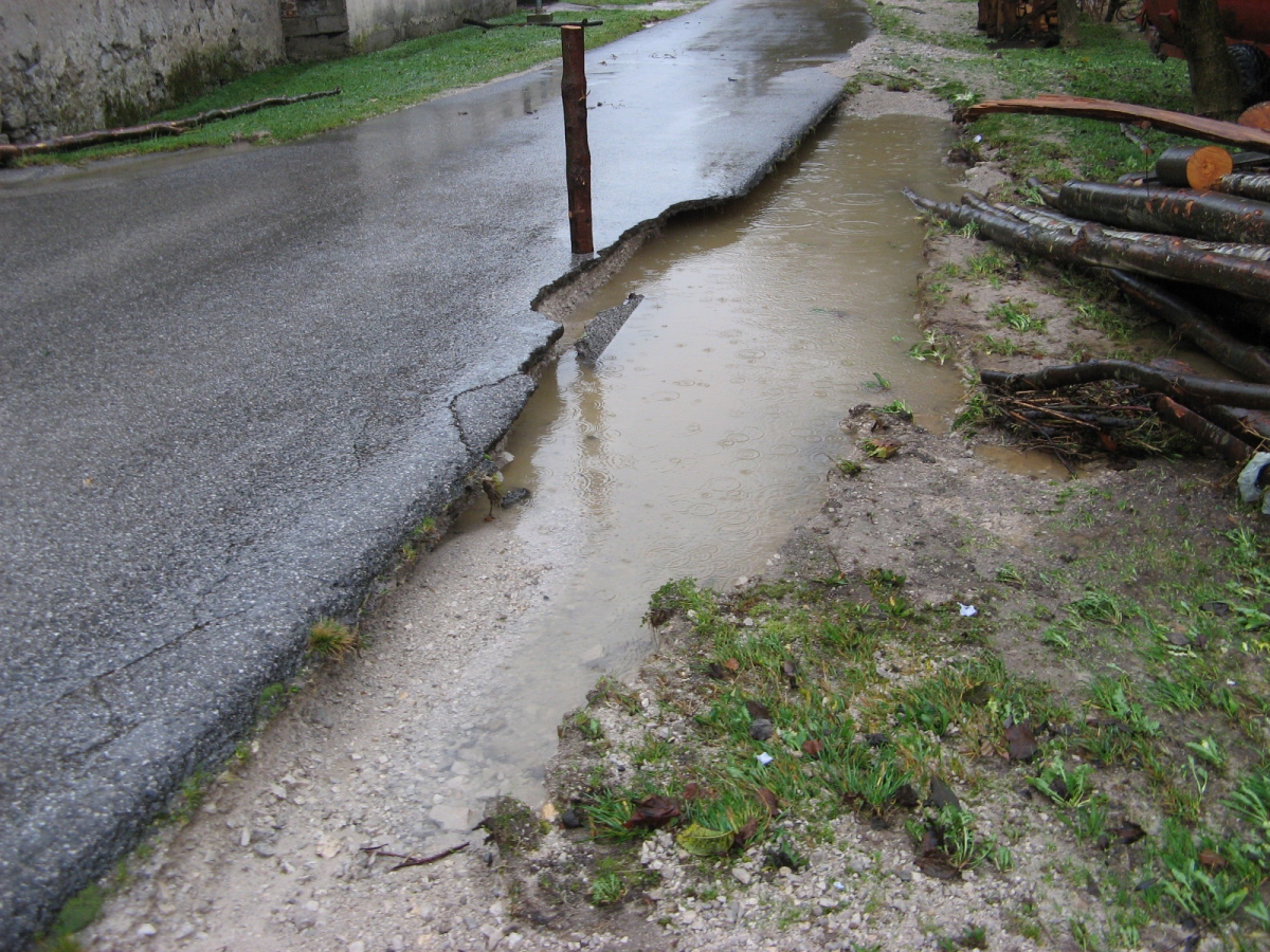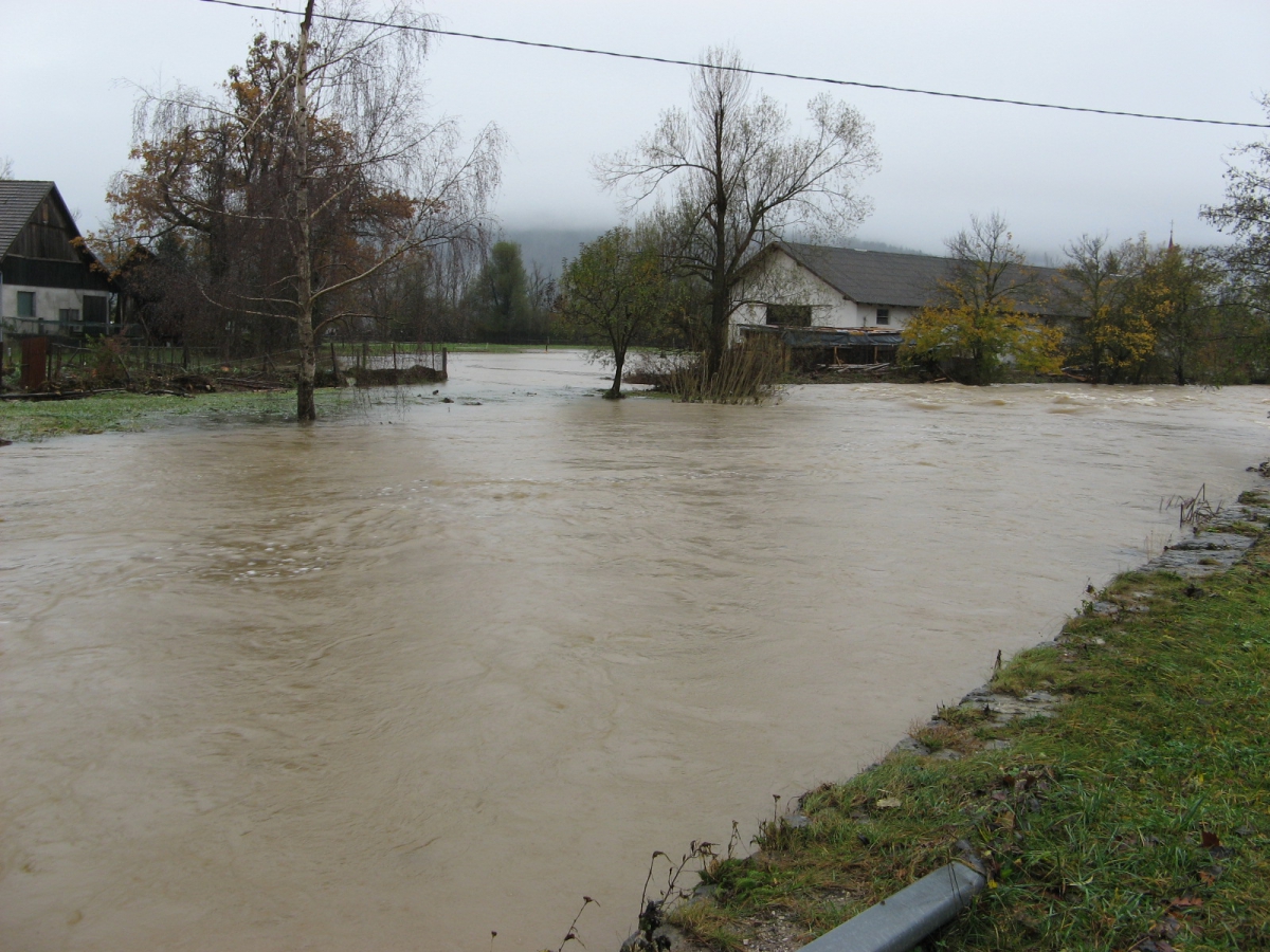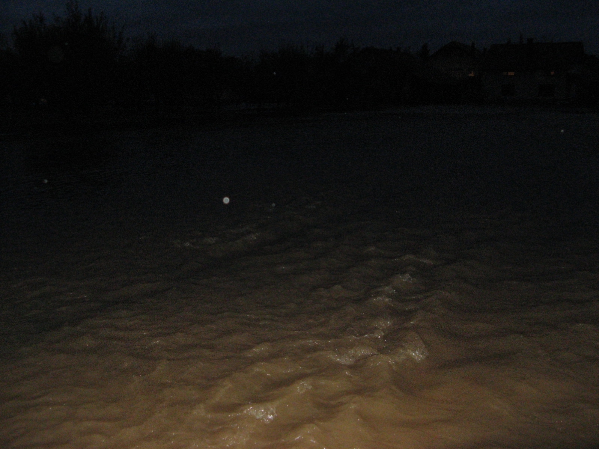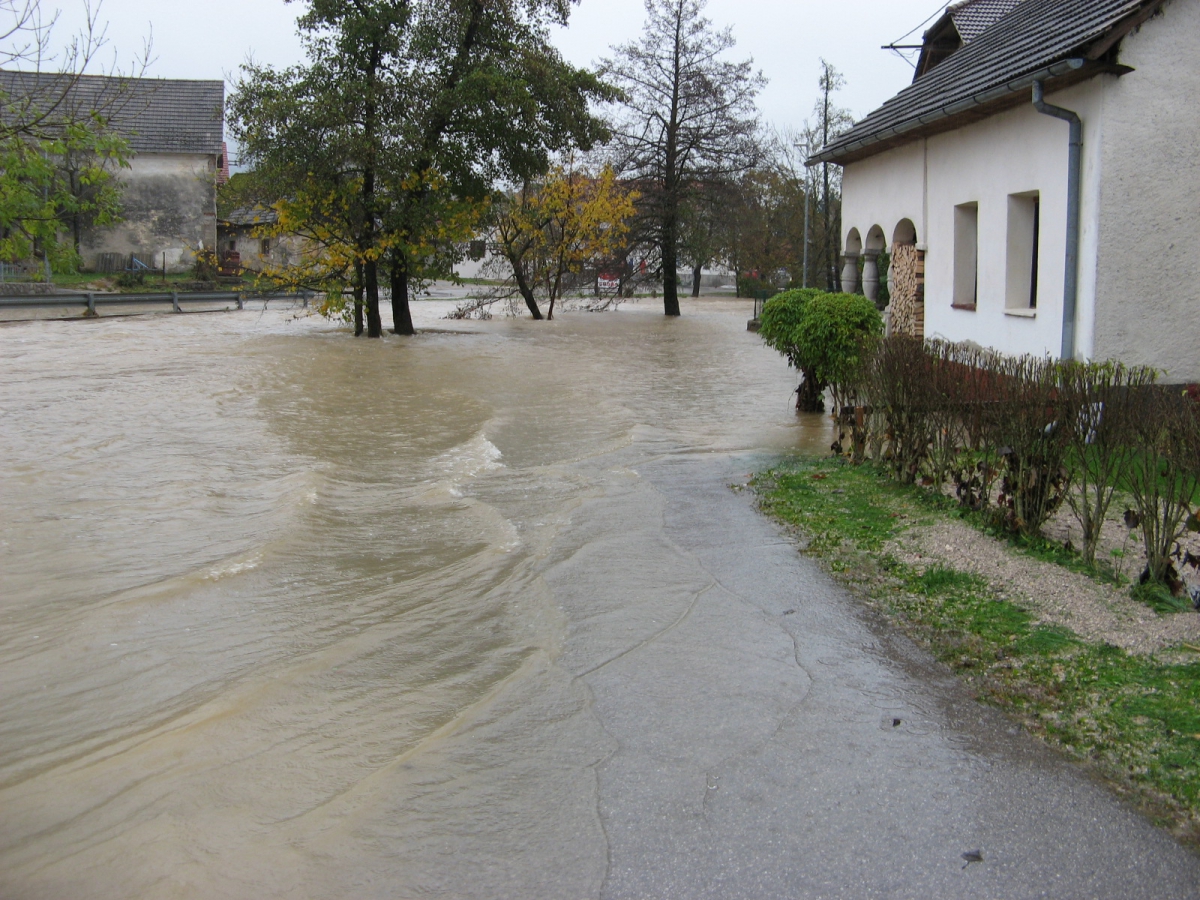 Okoli 6h se je začelo daniti in sem šla pogledat kaj je na njivah, vrtovih, no travnikih konec našega vrta, saj ko je bila noč, sem videla samo to, da je voda do žive meje, ter da je nekje v bližini močno bobnelo. Ko sem prišla ke, sem videla, da se je travnik spremenil v potok, bobnenje pa je povzročal tok, ki se je prelival preko ceste na drugo stran in nadaljeval svojo pot poplavljanja.
