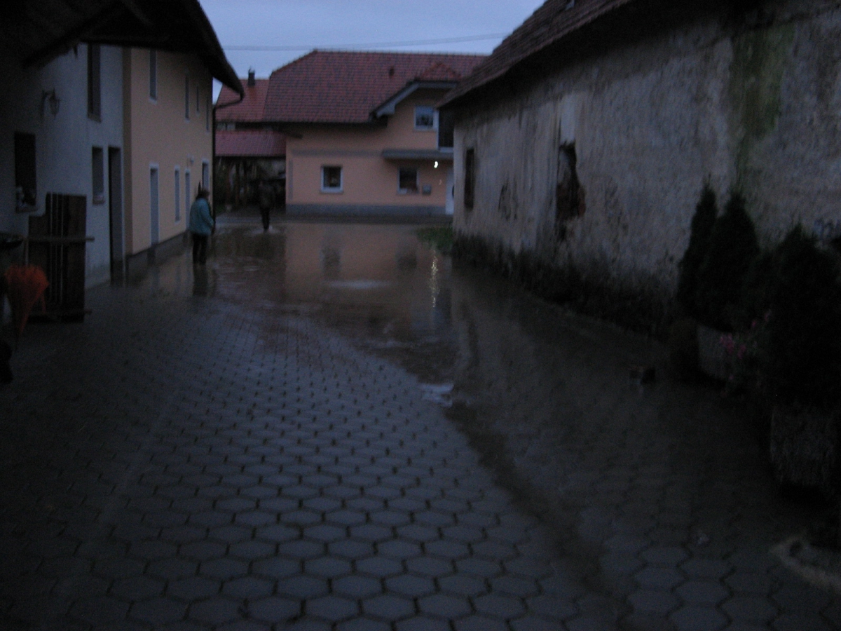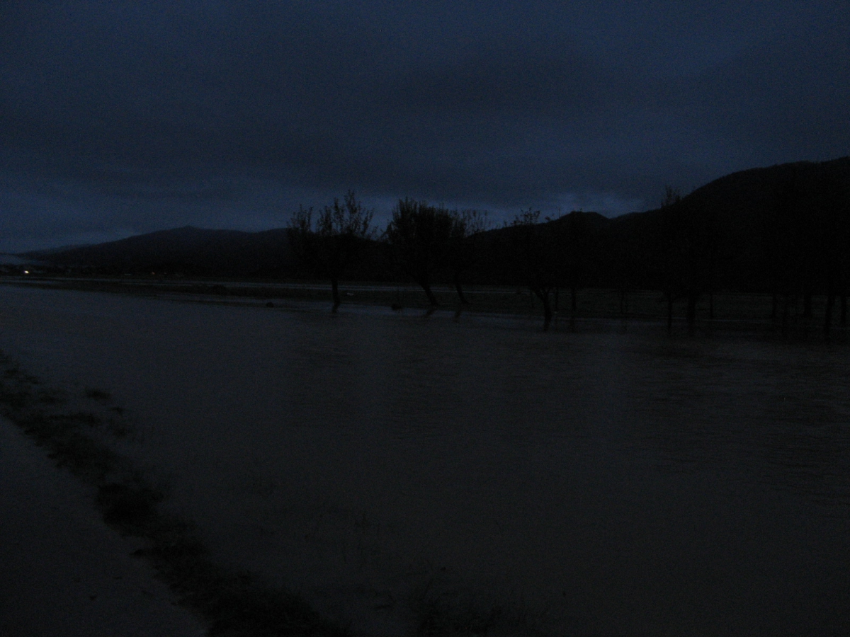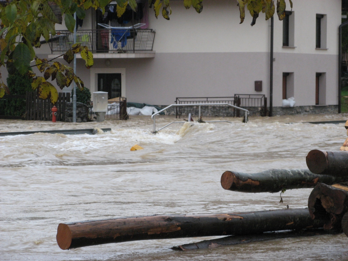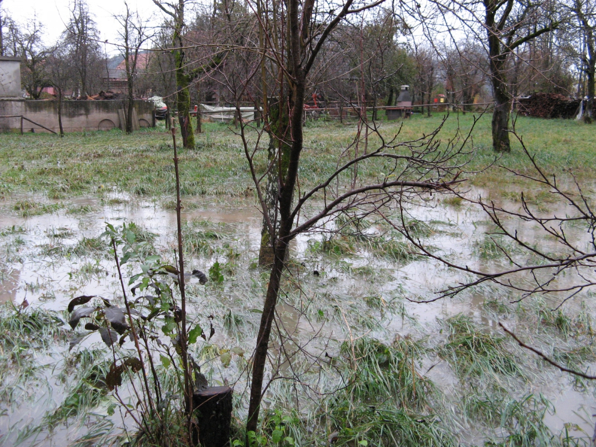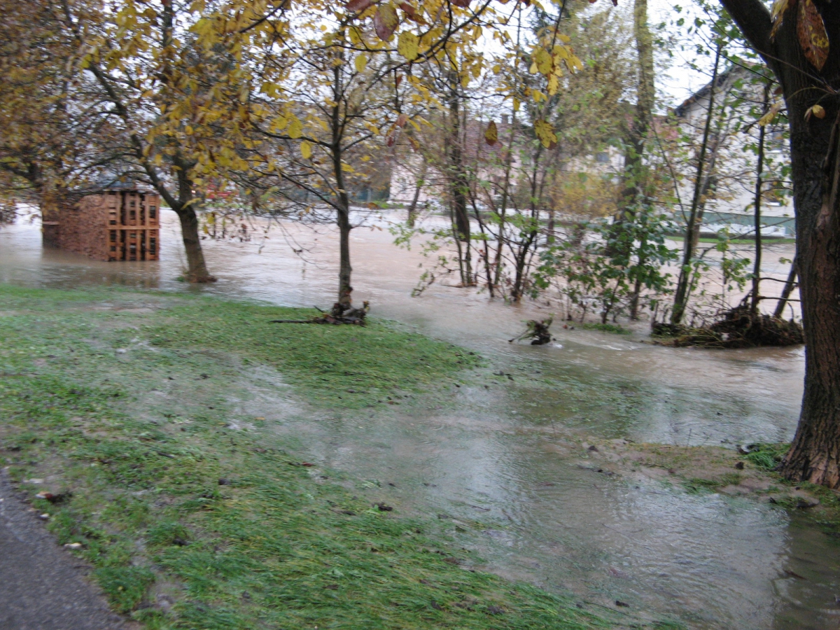 Okoli 6h se je začelo daniti in sem šla pogledat kaj je na njivah, vrtovih, no travnikih konec našega vrta, saj ko je bila noč, sem videla samo to, da je voda do žive meje, ter da je nekje v bližini močno bobnelo. Ko sem prišla ke, sem videla, da se je travnik spremenil v potok, bobnenje pa je povzročal tok, ki se je prelival preko ceste na drugo stran in nadaljeval svojo pot poplavljanja.