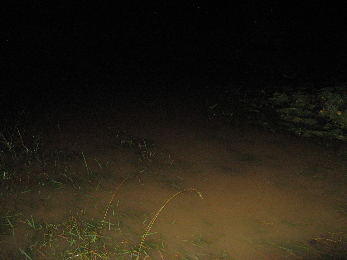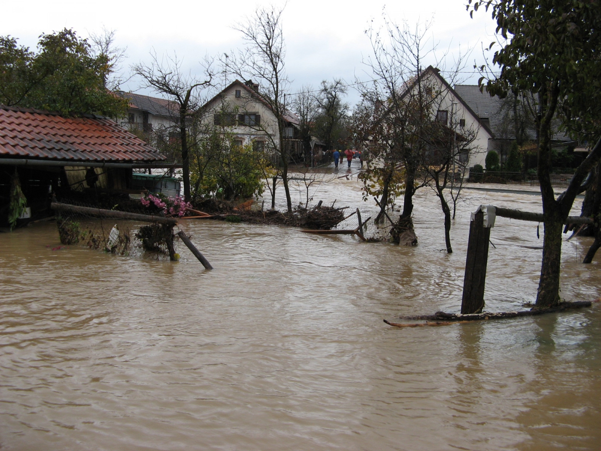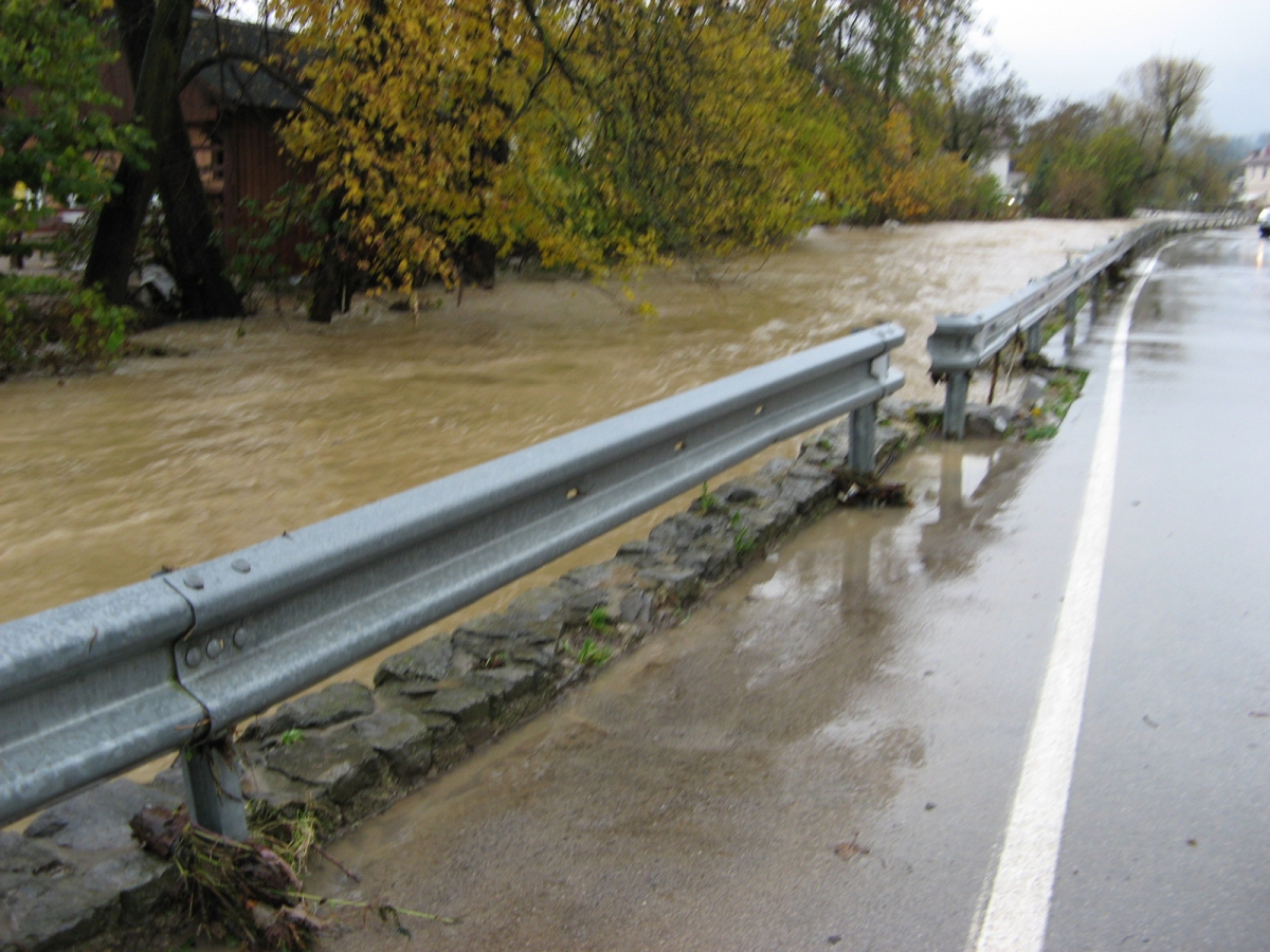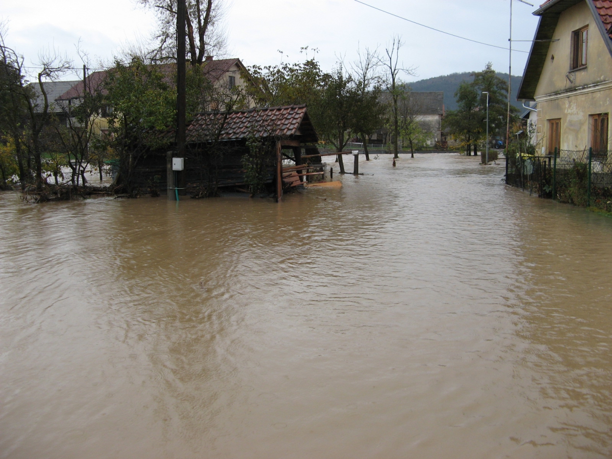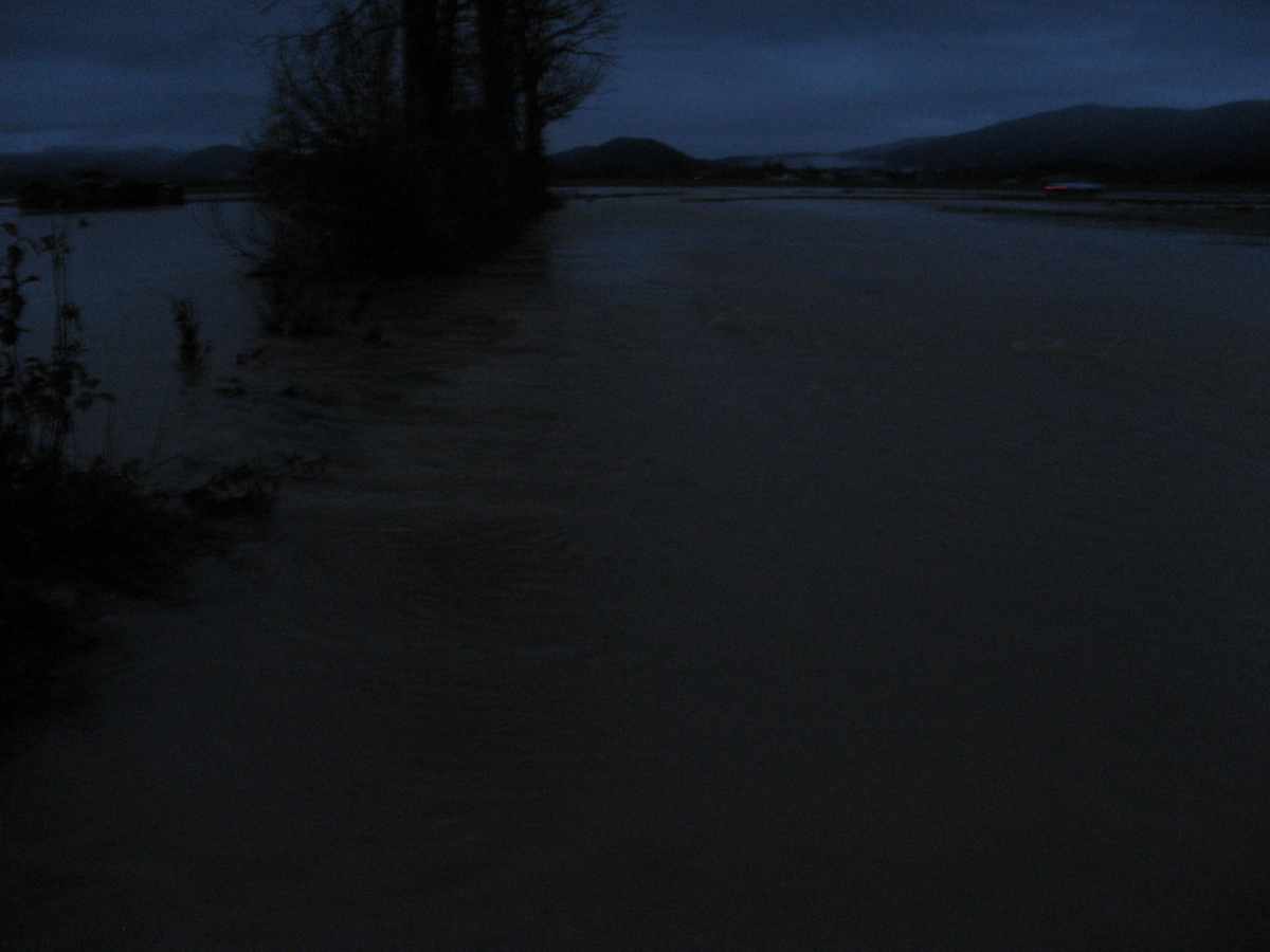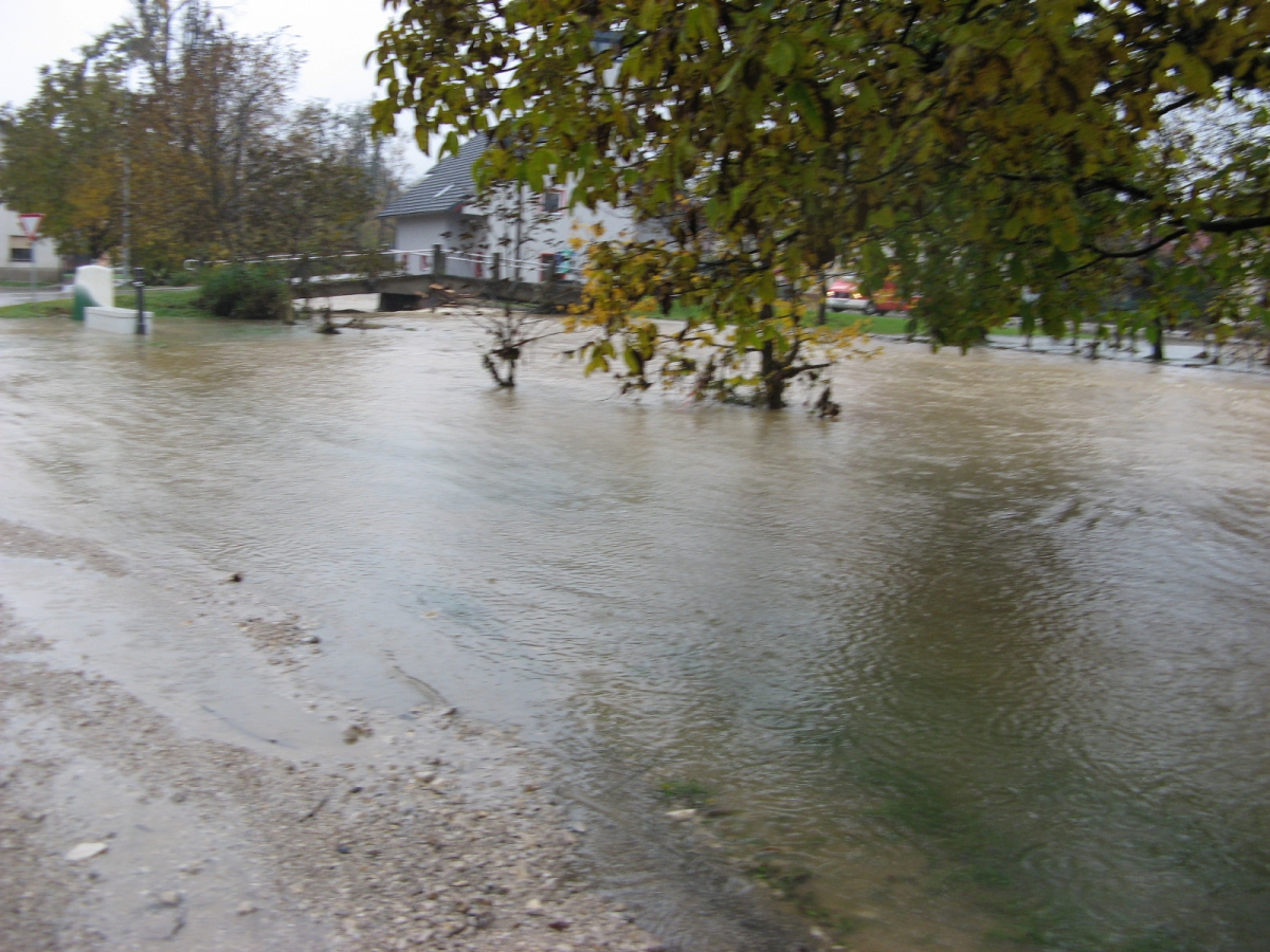 Okoli 6h se je začelo daniti in sem šla pogledat kaj je na njivah, vrtovih, no travnikih konec našega vrta, saj ko je bila noč, sem videla samo to, da je voda do žive meje, ter da je nekje v bližini močno bobnelo. Ko sem prišla ke, sem videla, da se je travnik spremenil v potok, bobnenje pa je povzročal tok, ki se je prelival preko ceste na drugo stran in nadaljeval svojo pot poplavljanja.