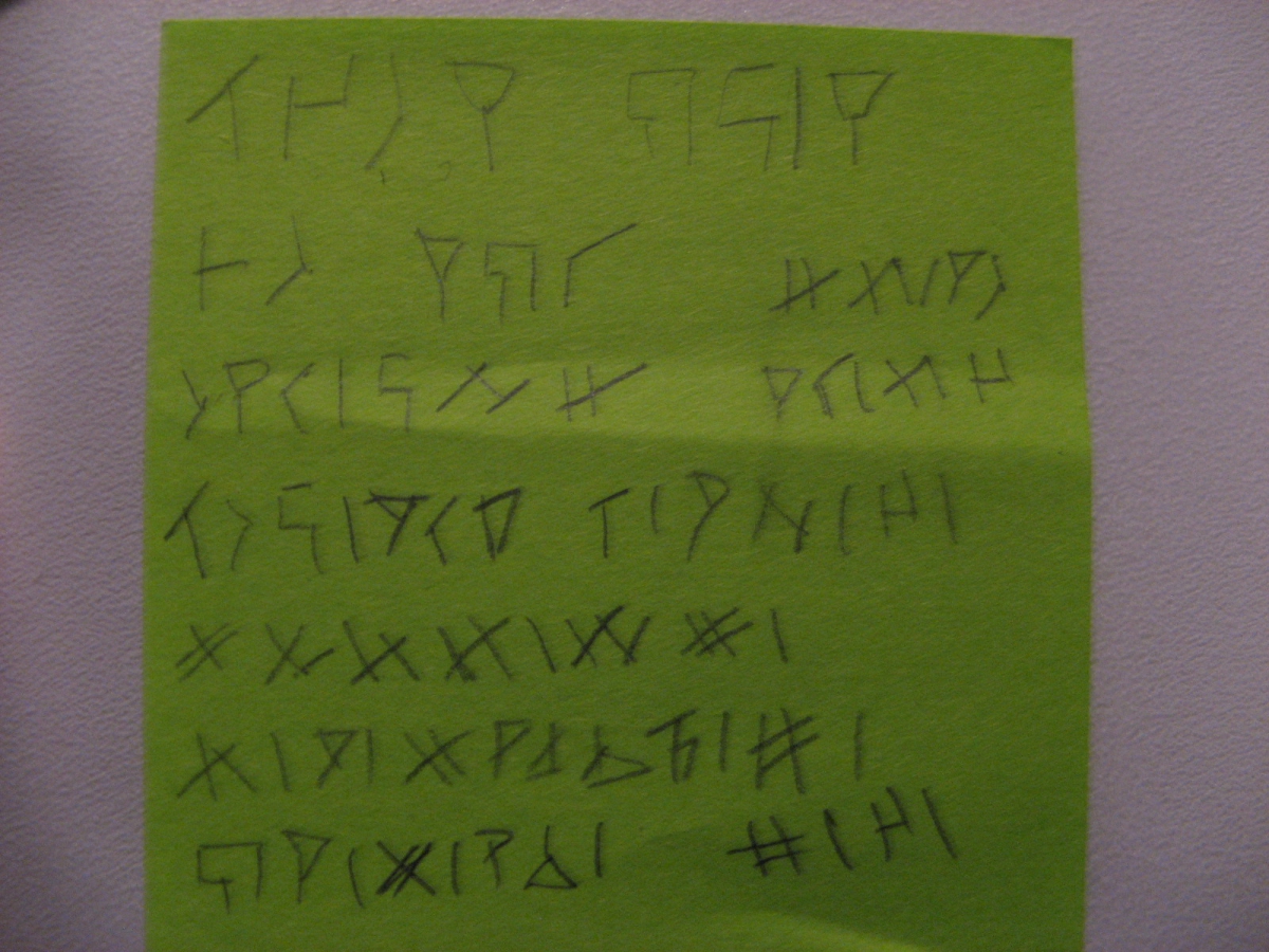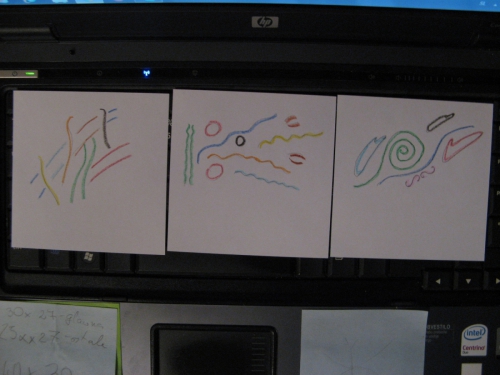 Potem sem nekaj let vse skupaj pozabila, do lani jeseni. Takrat sem pričela dobivati ponovno znake in simbole. Tu je nekaj primerov le teh. Nekatere risbe imajo na zadnji strani tudi sporočila.