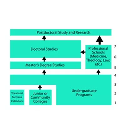 Po prejemu diplome (Bachelors degree) sledi magisterij (Masters) in doktorat (Doctoral Studies). V nekaterih primerih namesto magisterija odidejo tudi na poklicne šole (Professional schools) - to so programi, ki niso na voljo v dodiplomskem študiju (medicina, pravo,...)