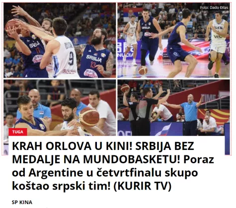 Poraz z Argentino je šokiral srbsko košarkarsko javnost. Ta je več mesecev pričakovala svetovno prvenstvo na Kitajskem v upanju, da jih čaka najmanj medalja, mnogi pa so že odkrito zahtevali zlato. In kaj zdaj, ko je teh sanj konec in Srbiji ostane samo še boj od 5. do 8. mesta? Socialna omrežja so polna kritik selektorja Aleksandra Đorđevića, takšno javno mnenje pa potrjujejo tudi spletne ankete. Vsem medijem pa je skupno začudenje, saj je tudi med športnimi novinarji vladal konsenz, da edino ZDA lahko izločijo to reprezentanco.