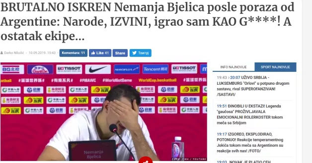 Odgovornost za poraz je prevzel trener Đorđević, največ odziva v javnosti pa je dobila novinarska konferenca Nemanje Bjelice, ki je po tekmo odkrito dejal, da je igral "kot drek".