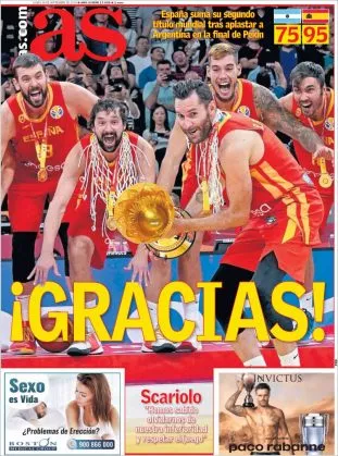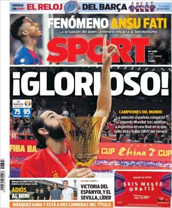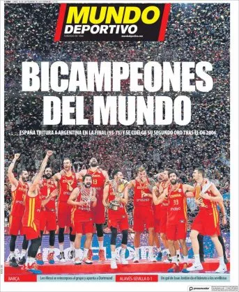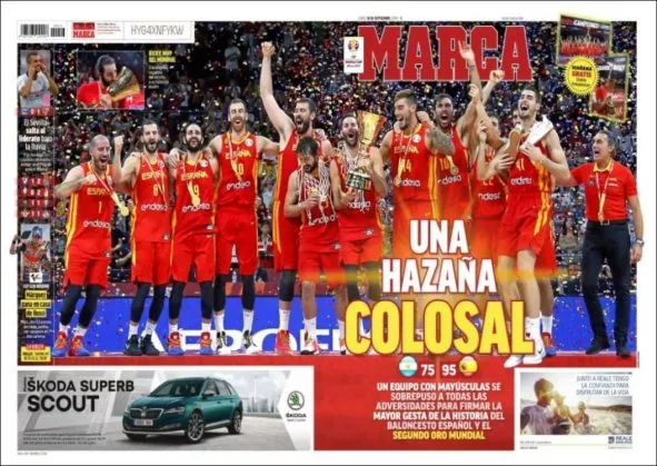 Poglejte galerijo današnjih naslovnic španskih časopisov, ki so polne hvalospevov zgodovinskega dosežka košarkarske izbrane vrste.