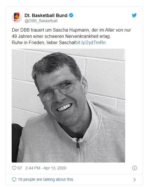V ZDA je umrl nekdanji nemški reprezentant Sascha Hupmann, preminil je nekaj dni pred svojim 50. rojstnim dnem. Zanj je bila usodna ataxia, poškodbe oz. okvare živčevja.