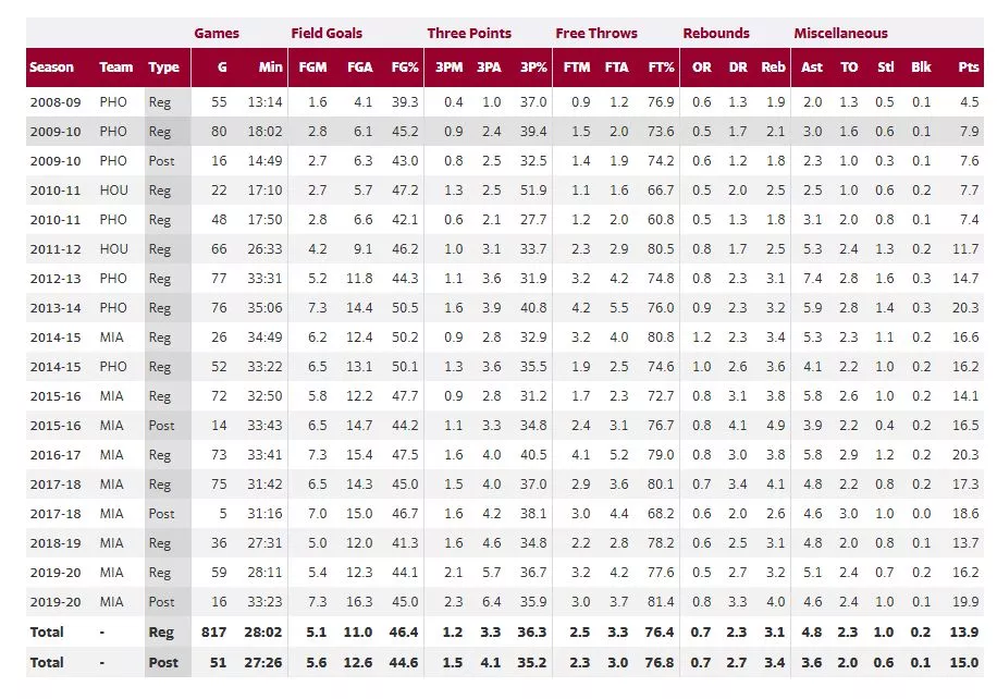 Dragićeva statistika v Ligi NBA:
