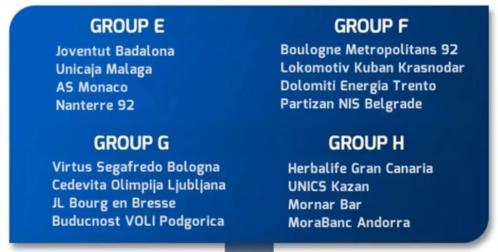 Lep uspeh so dosegli predstavniki iz ABA lige, saj so se vsi uvrstili v nadaljnje tekmovanje. Cedevita Olimpija se je kot že rečeno v skupini G znašla z Budučnostjo, Partizan bo igral v skupini F, Mornar, za katerega je to prva uvrstitev med TOP 16, pa bo v skupini H napredovanje iskal proti Gran Canarii, Unicsu iz Kazana in Mora Banc Andorri.