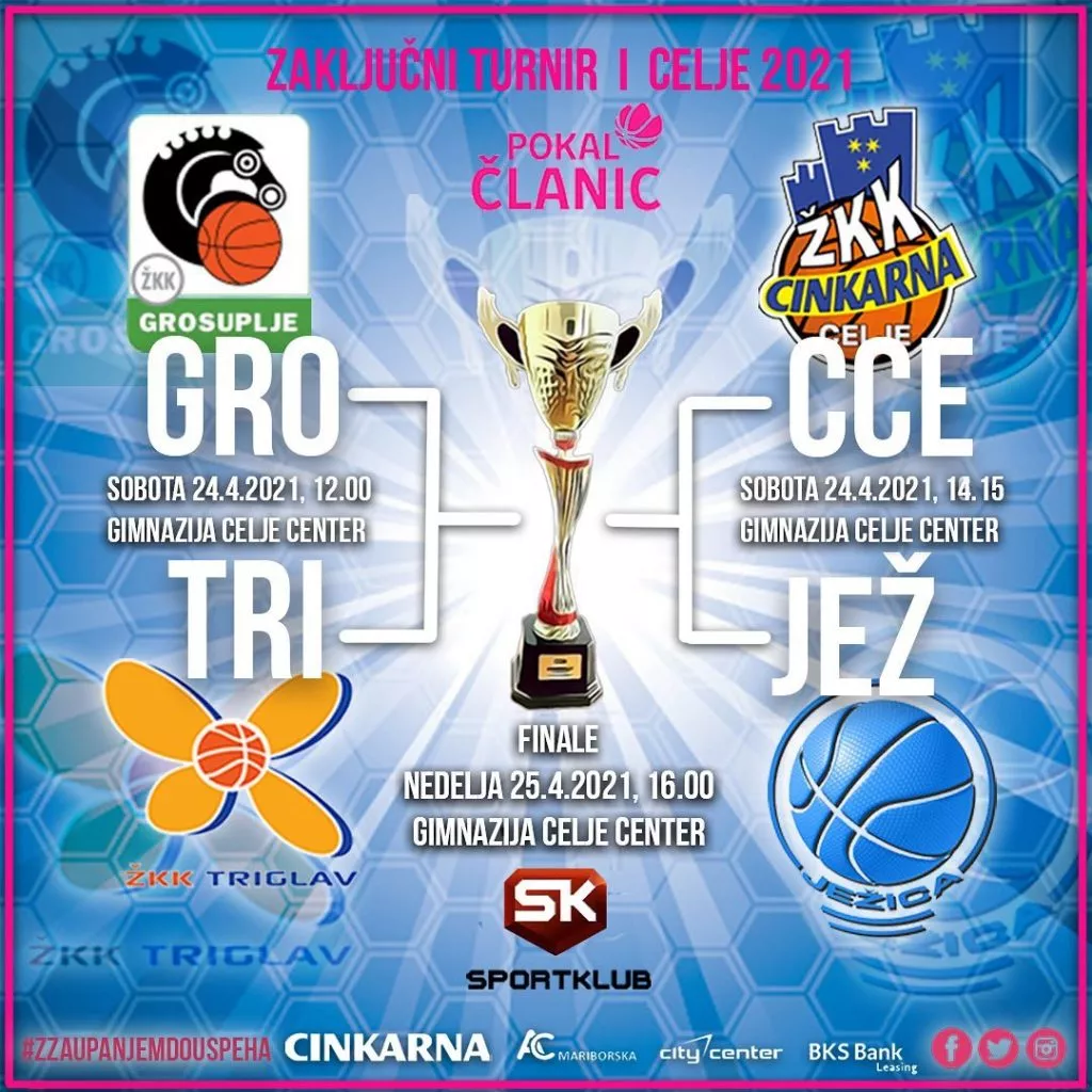 Na sedežu Košarkarske zveze Slovenije so izžrebali polfinalna para zaključnega turnirja pokalnega tekmovanja za košarkarice. V prvem polfinalu se bosta srečali ekipi Grosuplja in Triglava, v drugem polfinalu pa si bosta nasproti stali Cinkarna Celje in Ježica. Zaključni turnir bo v Celju na sporedu ta konec tedna. Vse tri tekme bodo v neposrednem prenosu na televiziji Sportklub.