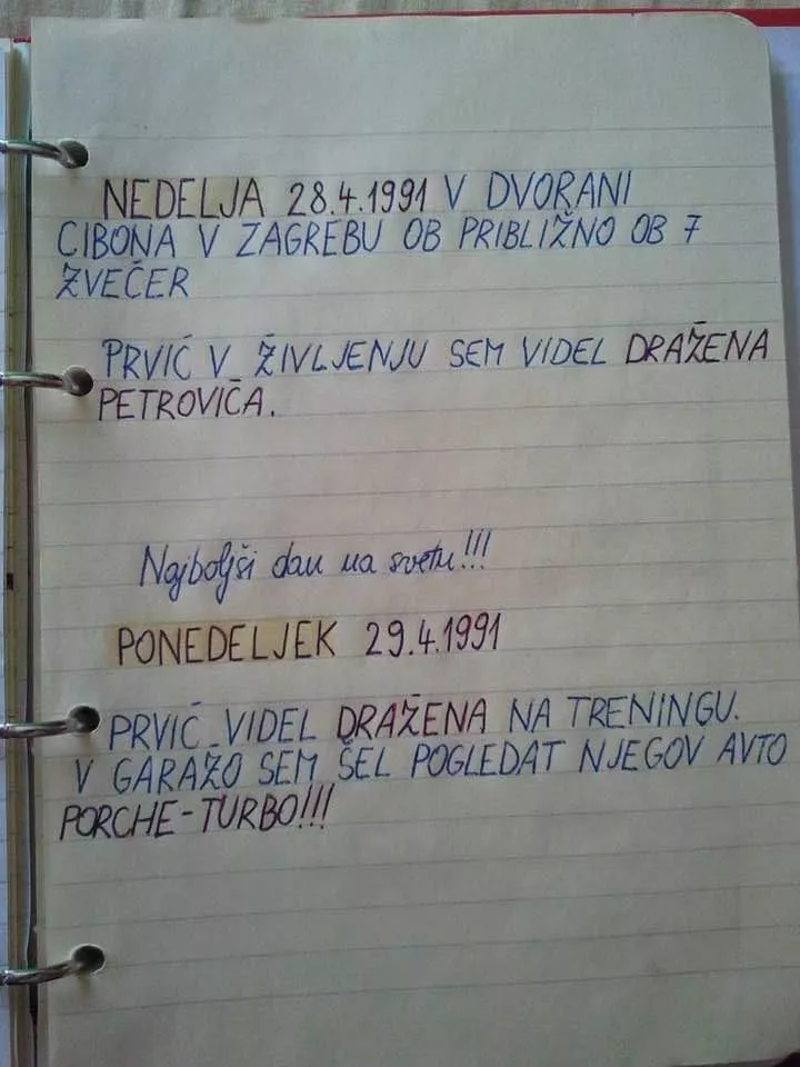 Ob dnevu, ko se cel svet spominja Dražena in njegovega prehitrega slovesa, je Belina na Facebooku objavil pomenljiv zapis iz svojega dnevnika! Na Facebooku je zapisal Belina takole: Moj dnevnik 1991-30 let nazaj. Najboljši dan na svetu!!! #nikolipozabljen , potem pa dodal fotografijo dnevnika!