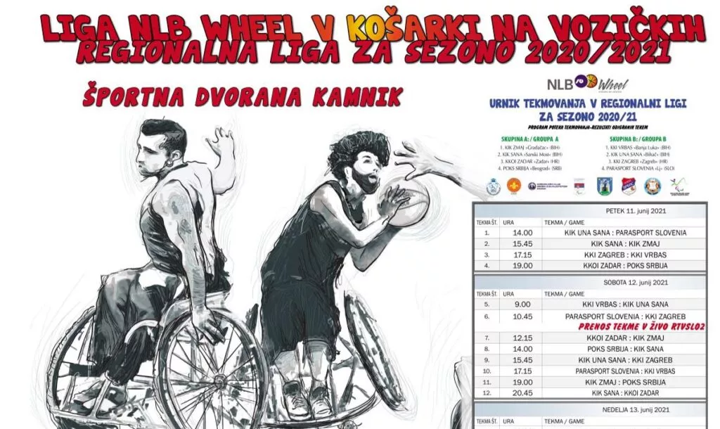Slovenija, točneje Zveza paraplegikov Slovenije bo skupaj z Občino Kamnik in podpori generalnega pokrovitelja Novo ljubljansko banko d.d. med 11. in 13. junijem 2021 organizirala 13. sezono regionalne košarkarske lige na vozičkih NLB Wheel.
