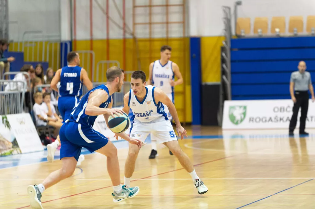 V lokalnem derbiju so košarkarji Term Olimie presenetili favorizirano Rogaško in prišli do druge zmage v ligi Nova KBM. Drugi polčas so dobili za deset točk, predvsem pa so znali v končnici unovčiti izkušnje najstarejših igralcev in prednost pod obročema (skoki 43:36). Osemintridesetletni Nejc Strnad je bil prvi strelec tekme s 25 točkami (met iz igre 9:13), 31-letni Simo Atanacković je tako kot Casey Benson (15 točk, 9 skokov) na parketu preživel vseh 40 minut in zbral 16 točk ter osem skokov, kljub sedmim izgubljenim žogam in metu zgolj 2:11 pa je eno od odločilnih potez naredil 35-letni Sandi Čebular. Minuto in 40 sekund pred koncem, ko so domači s trojko Terryja Leeja Armstronga (19 točk) zmanjšali zaostanek na štiri točke, je Čebular v zadnji sekundi napada izsilil osebno napako pri metu za tri točke in Terme Olimia znova oddaljil na varno razdaljo, ki je domači ob nizu zgrešenih poskusov za tri točke niso več uspeli nadoknaditi.