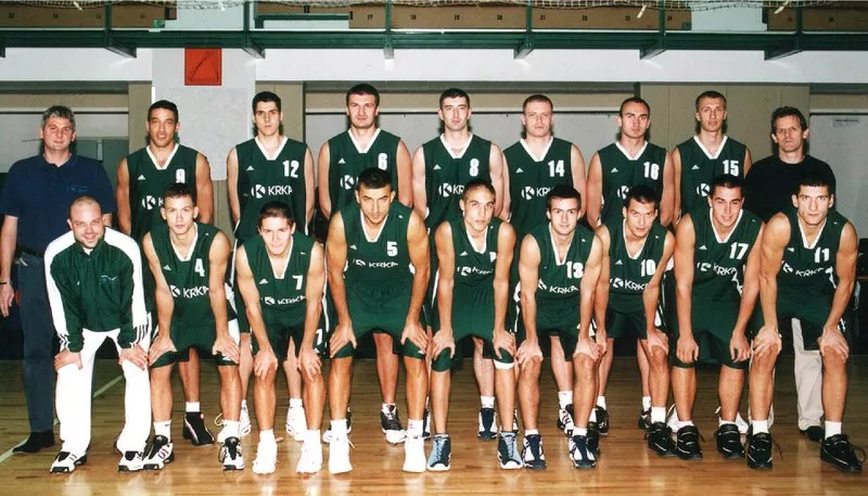 Ekipa Krke ob prvi domači evroligaški zmagi (7.11. 2001):