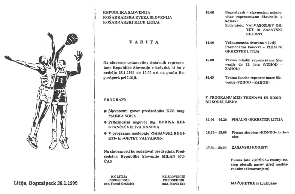 Protokolarnemu in slavnostnemu delu ustanovitve državnih košarkarskih reprezentanc Slovenije na gradu Bogenšperk, so sledile tekme kandidatov za olimpijsko reprezentanco, kandidatk za žensko člansko reprezentanco in reprezentančnih kandidatov do 22 let. Košarkarice in košarkarji so se gledalcem predstavili v litijski športni dvorani.